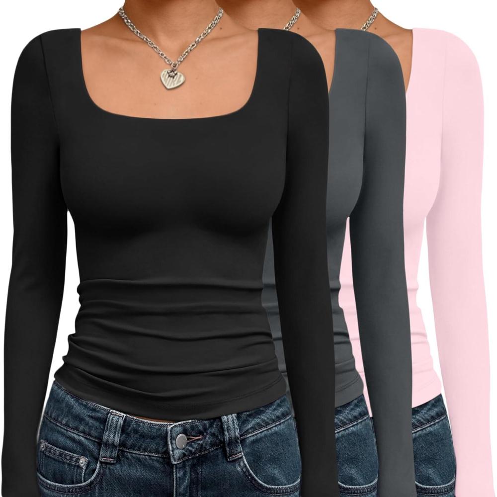 imageAUTOMET 3 Pack Womens Long Sleeve Shirts Fall Fashion Scoop Neck Crop Tops Basic Layer Slim Fit Y2K ClothesBlack grey pink