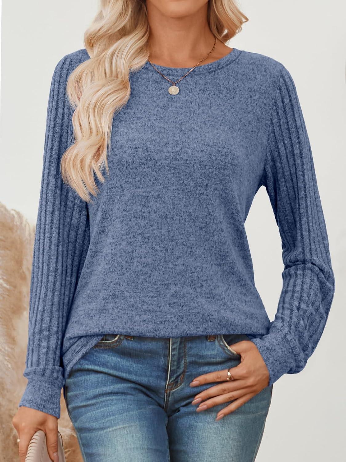 imageAUTOMET Long Sleeve Shirts for Women Fall Lightweight Sweaters Business Dressy Casual Tops Winter TrendyBlue