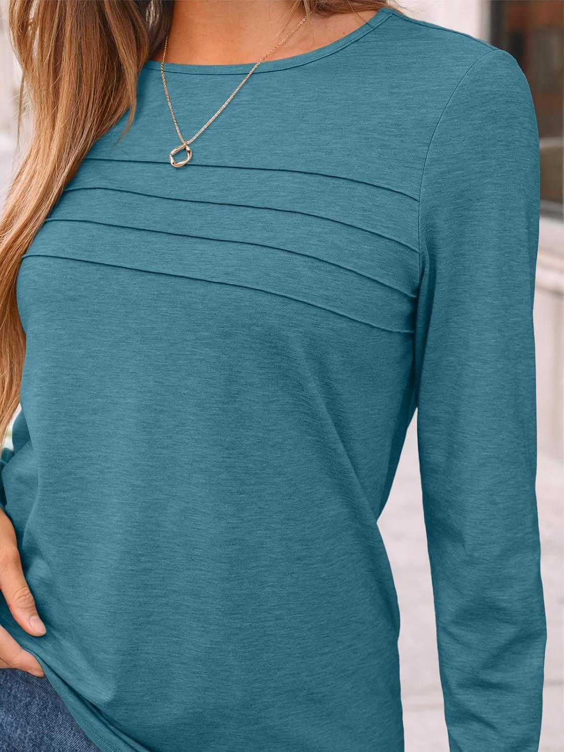 AUTOMET Long Sleeve Shirts for Women Pleated Dressy Casual Business Blouses Trendy Fashion Tunic Basic Tops(Blue)