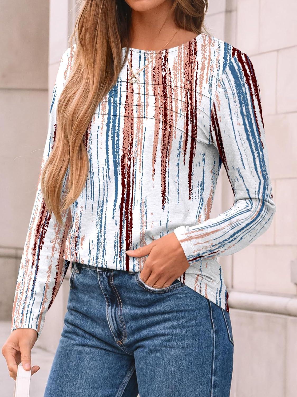 AUTOMET Long Sleeve Shirts for Women Pleated Dressy Casual Business Blouses Trendy Fashion Tunic Basic Tops(Gradient Multi)