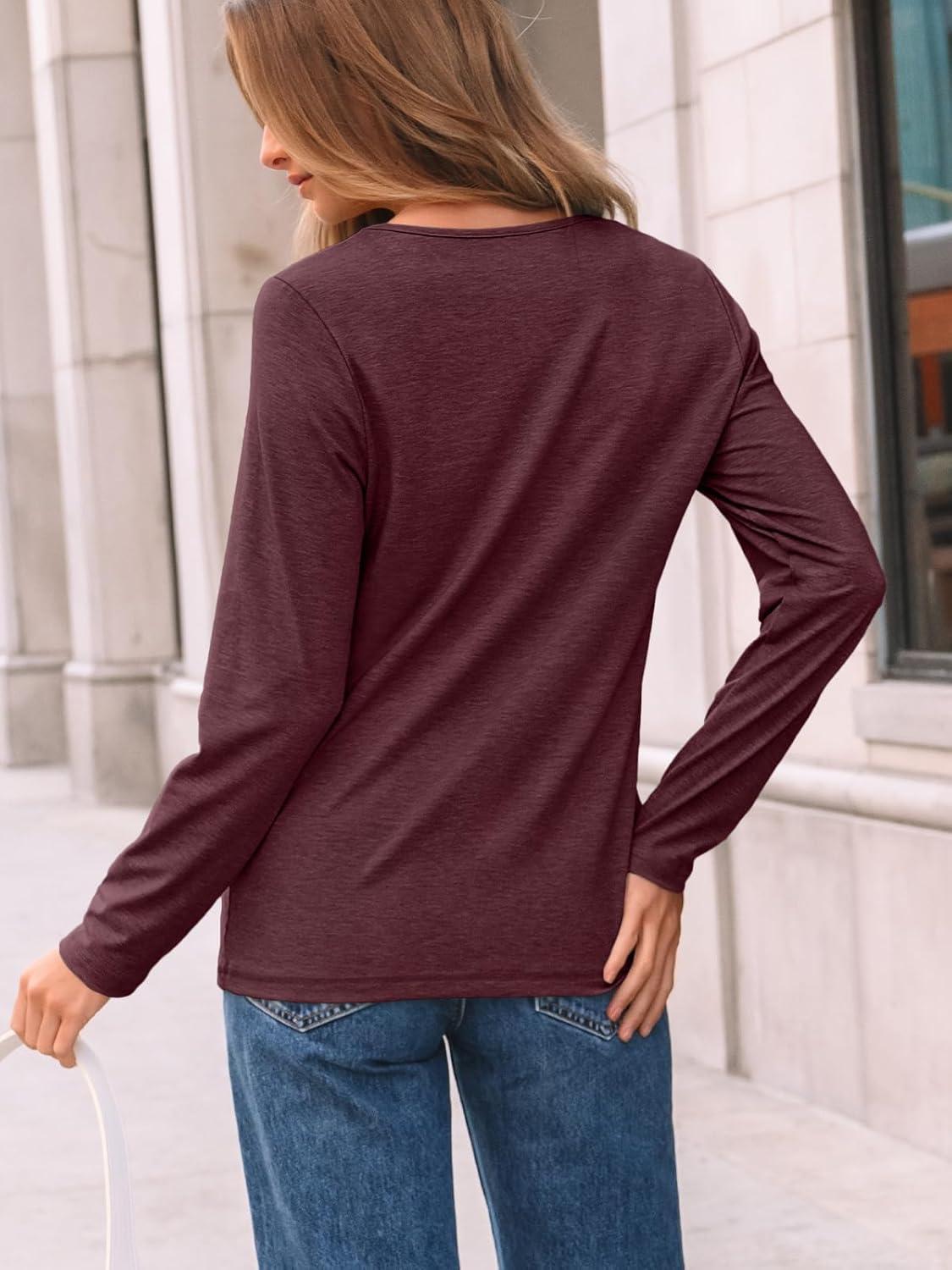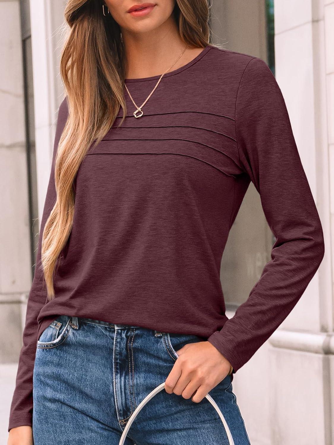 AUTOMET Long Sleeve Shirts for Women Pleated Dressy Casual Business Blouses Trendy Fashion Tunic Basic Tops(Wine)
