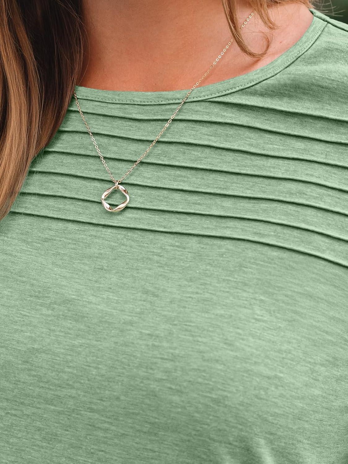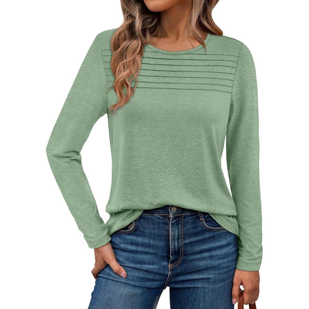 AUTOMET Long Sleeve Shirts for Women Spring Fashion Tops 2025 Dressy Casual Blouses Trendy Pleated Tunic Outfits(Green)