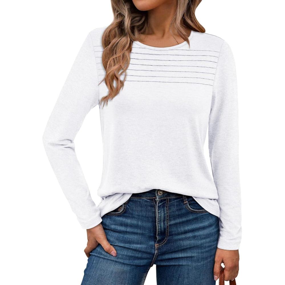 imageAUTOMET Long Sleeve Shirts for Women Spring Fashion Tops 2025 Dressy Casual Blouses Trendy Pleated Tunic OutfitsWhite