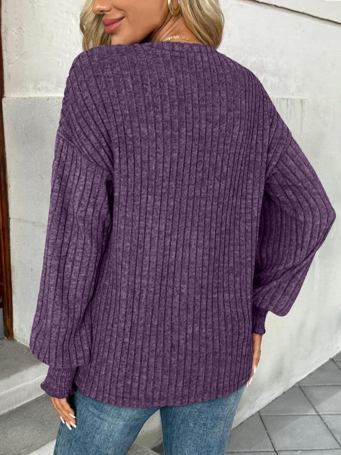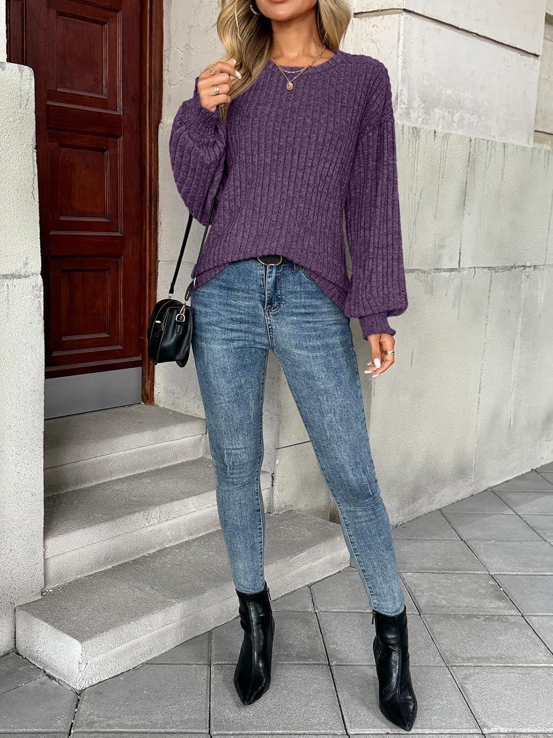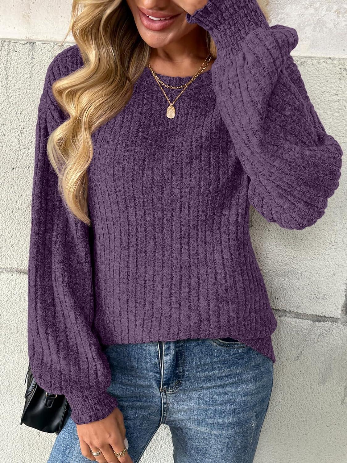AUTOMET Long Sleeve Shirts for Women Tops Fall Fashion Outfits 2025 Crewneck Sweaters Trendy Blouse Dressy Casual(Purple)