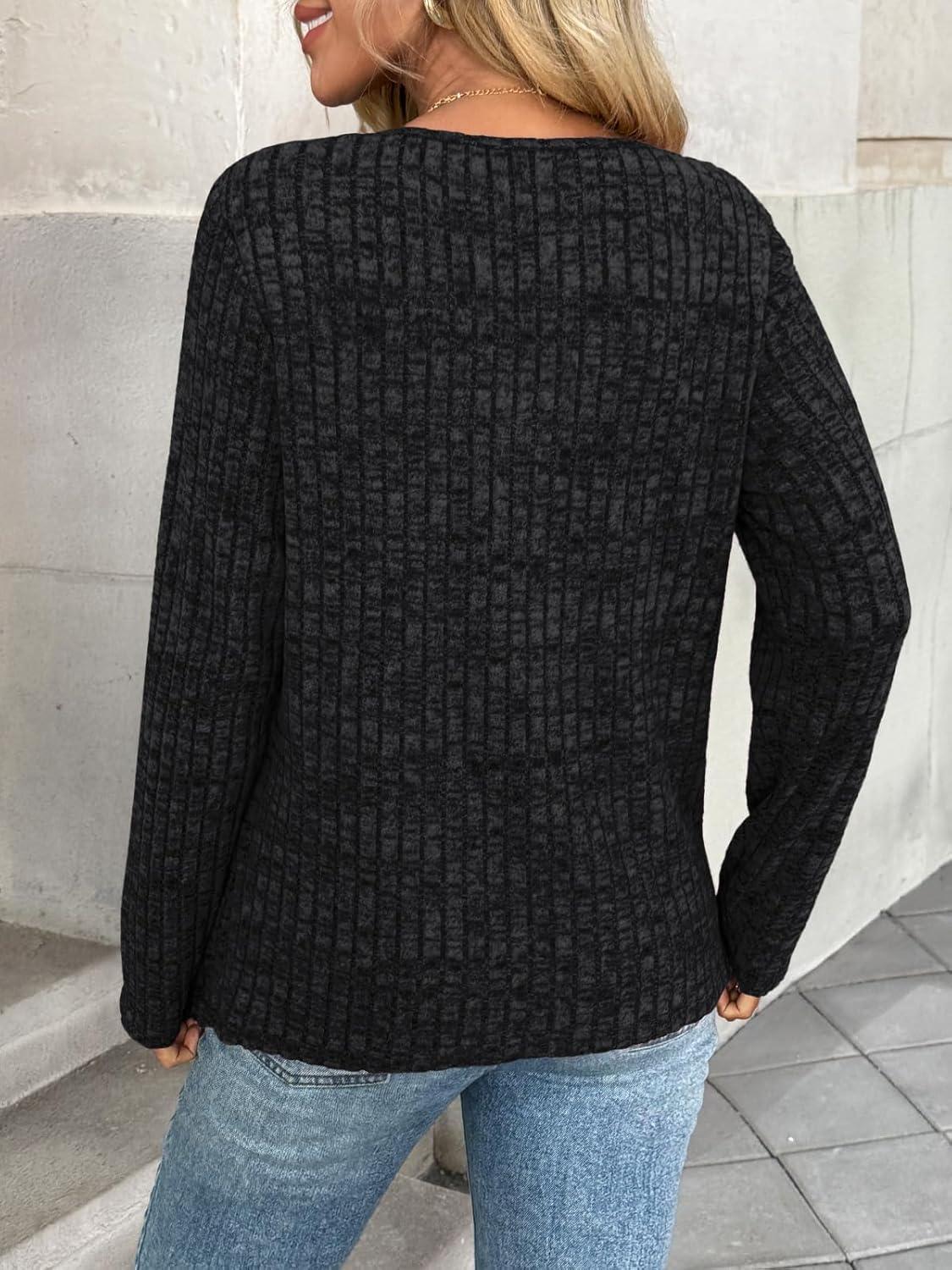 AUTOMET Long Sleeve Shirts Womens Tops Fall Fashion Business Casual Outfits 2025 V Neck T Shirts Sweaters Trendy(Black)