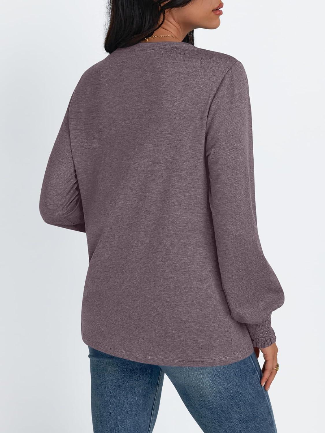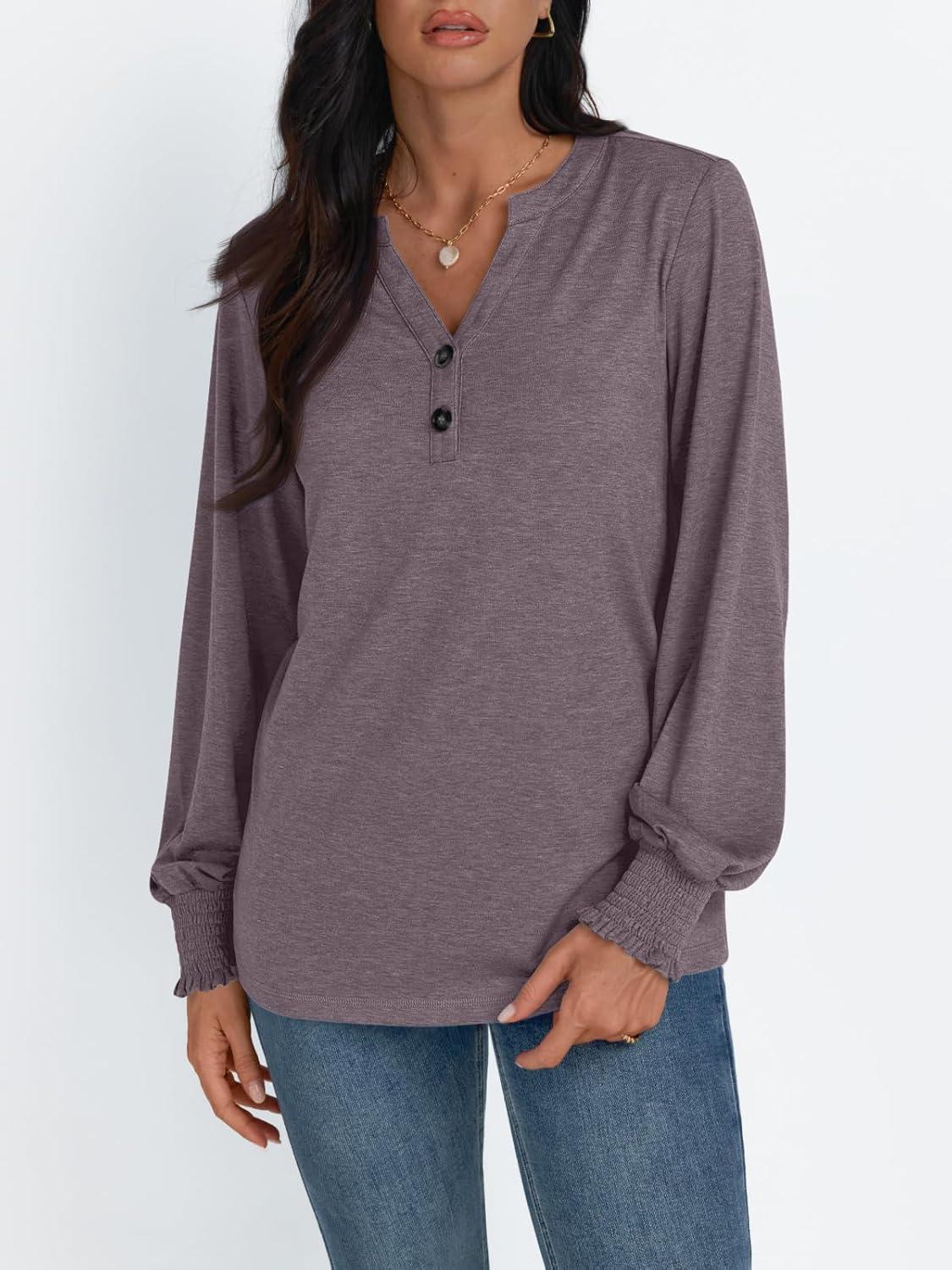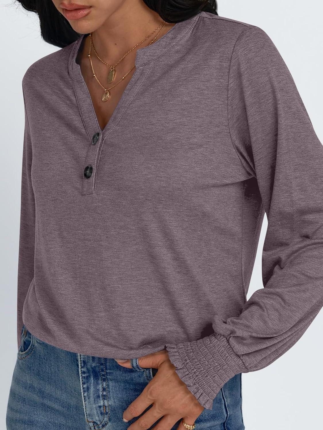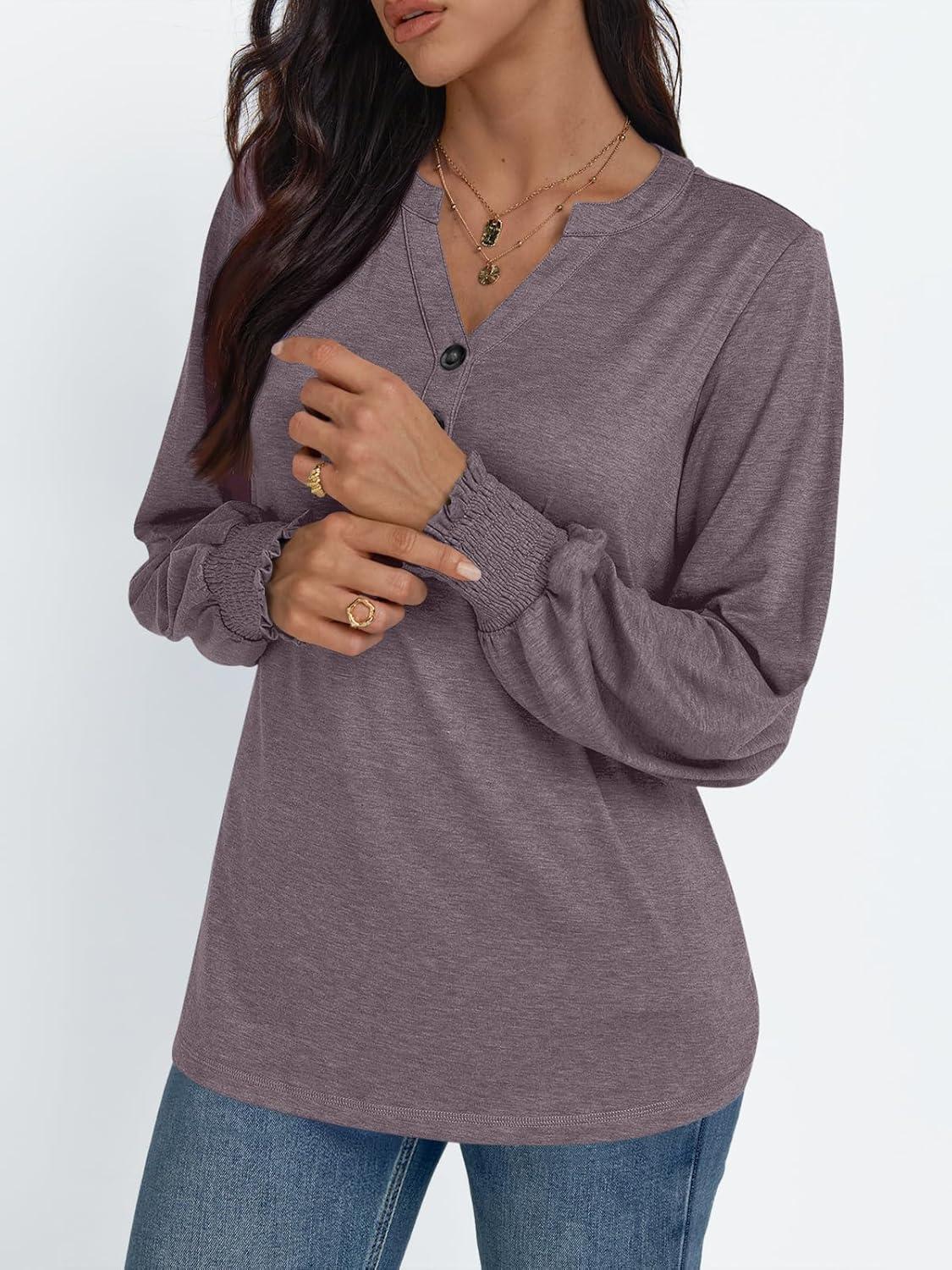 AUTOMET Long Sleeve Shirts Womens Tops Henley Dressy Casual Blouses Fall Outfits 2025 Trendy Loose Fit Comfy Winter Clothes(Grey Purple)