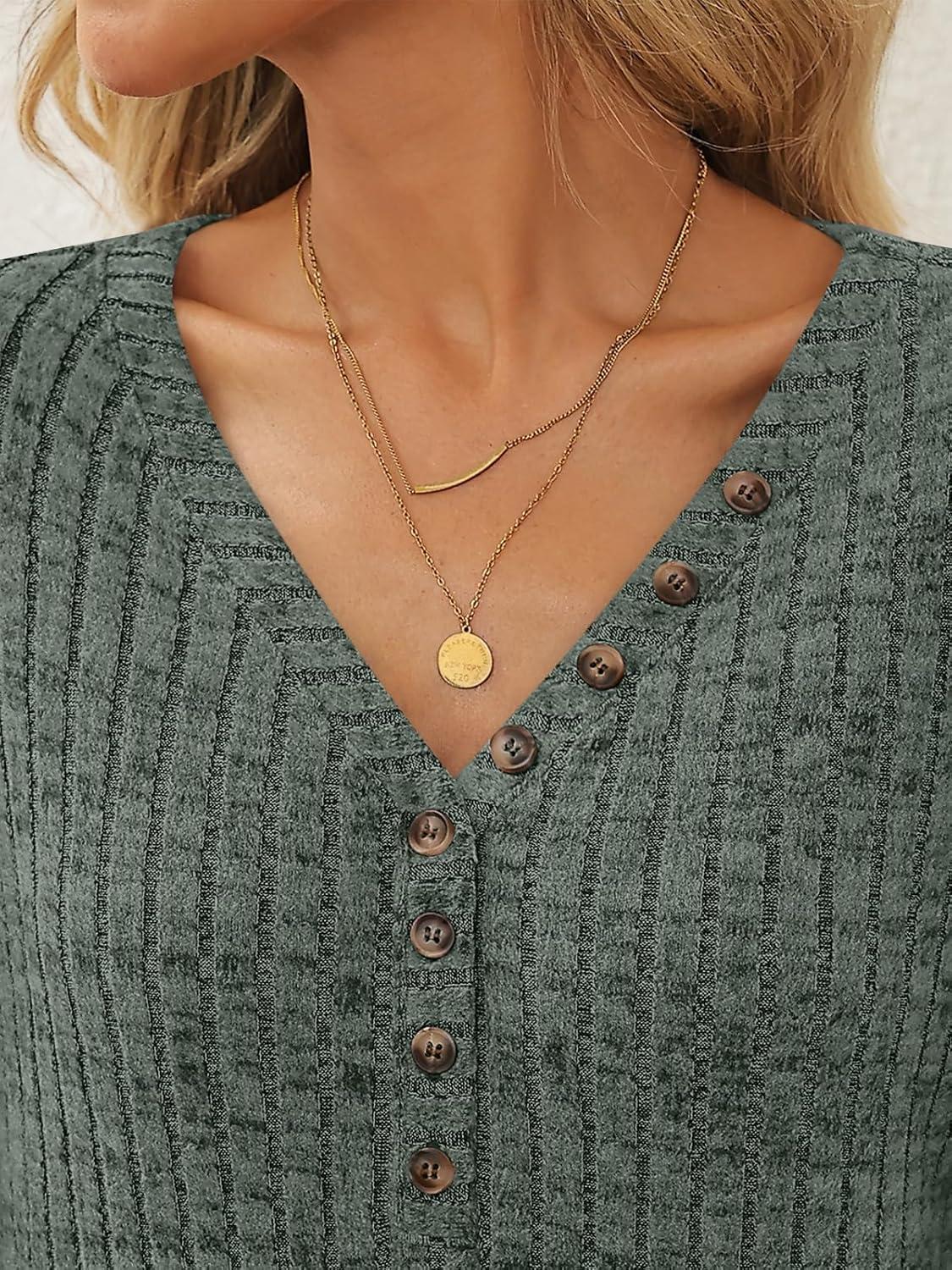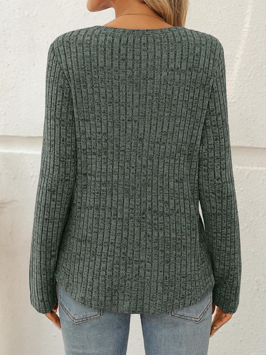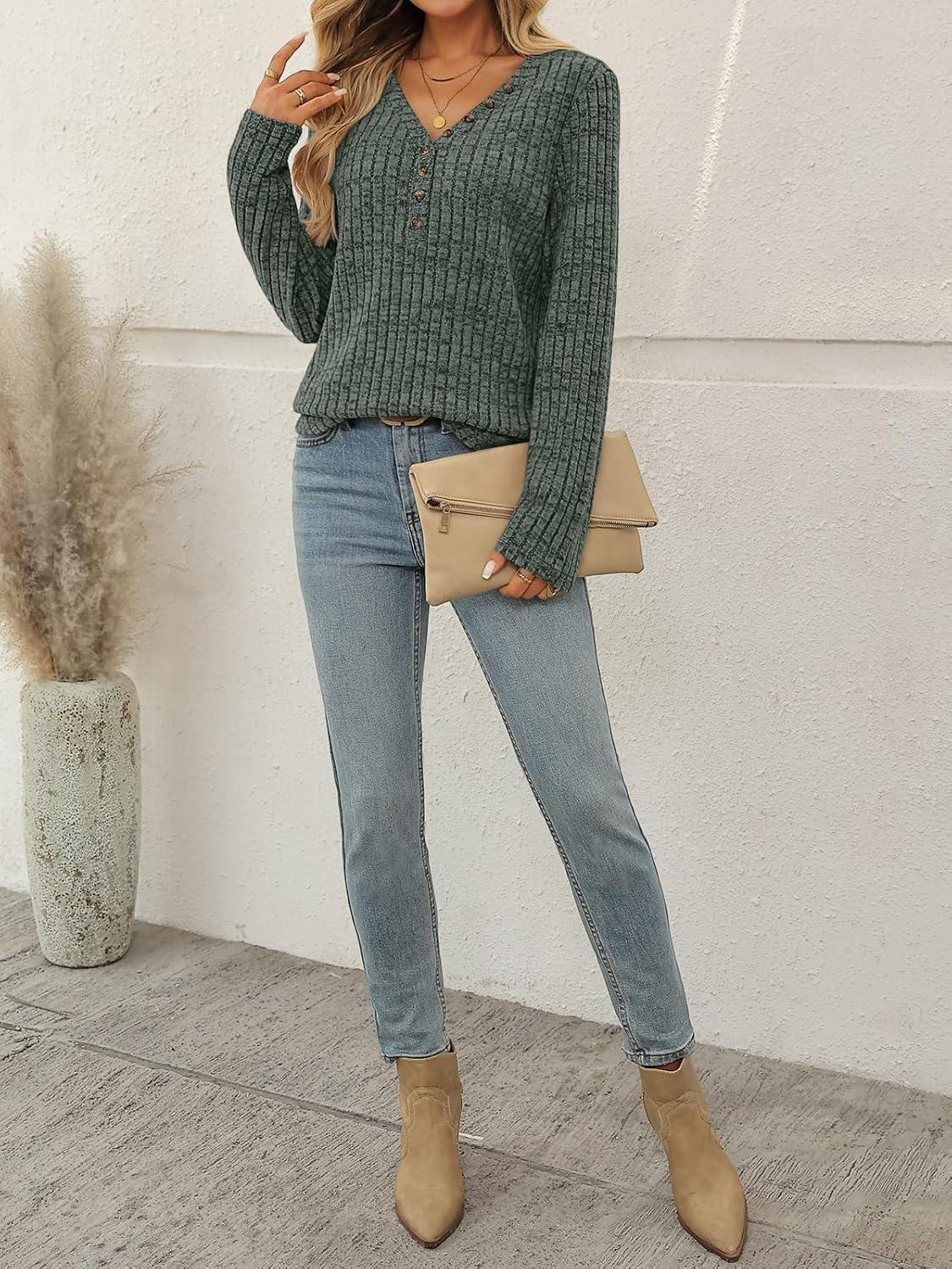 AUTOMET Sweater for Women Long Sleeve Henley Shirts Dressy Casual Tunic Tops Deep V Neck Sweaters Fall Outfits 2025(Green)