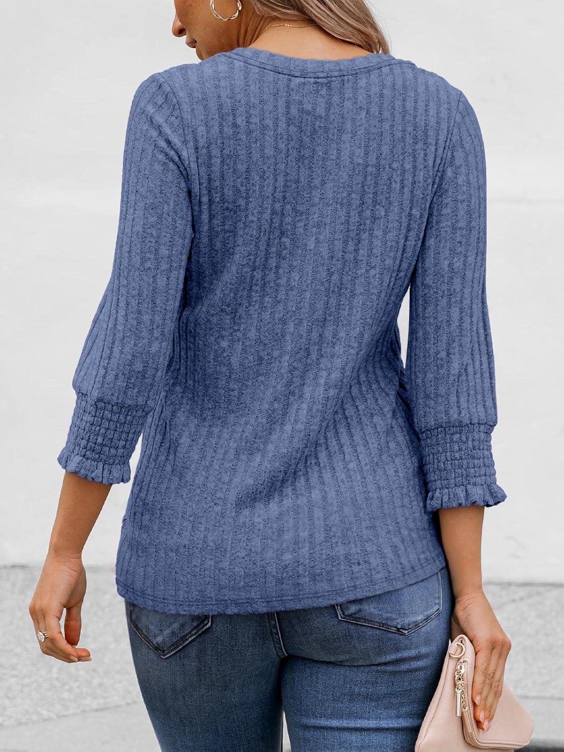 AUTOMET Womens 3/4 Sleeve Tops T Shirts Summer Sweater Round Neck Casual Top Ladies Tops Business Casual Blouses(Blue)