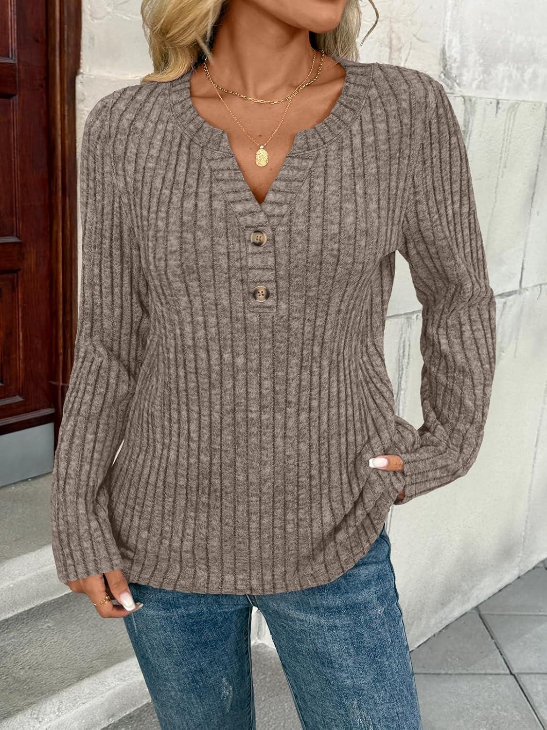 AUTOMET Women’s Long Sleeve Henley Shirts Fall Lightweight Sweaters Dressy Casual Tunic Tops Fashion Clothes 2025(Coffeegrey)