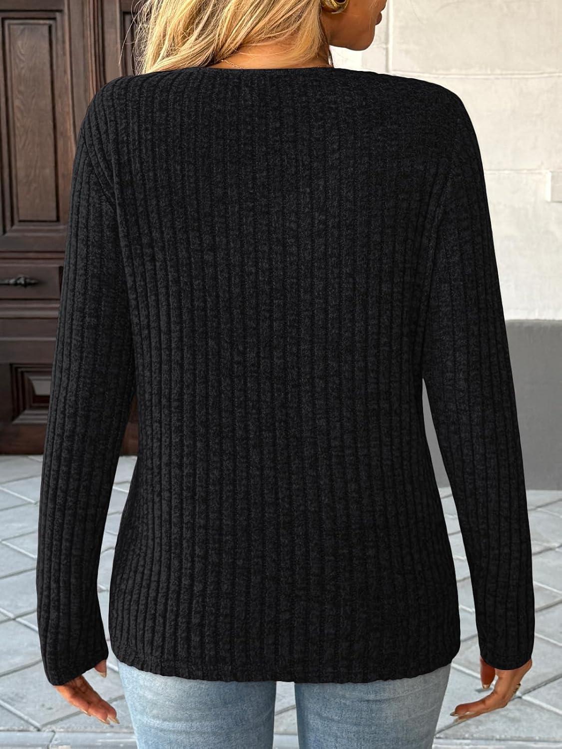 AUTOMET Womens Long Sleeve Shirt Fall Fashion 2025 V Neck Sweater Tunic Tops Dressy Casual Work Blouse Trendy Winter Clothing(Black)