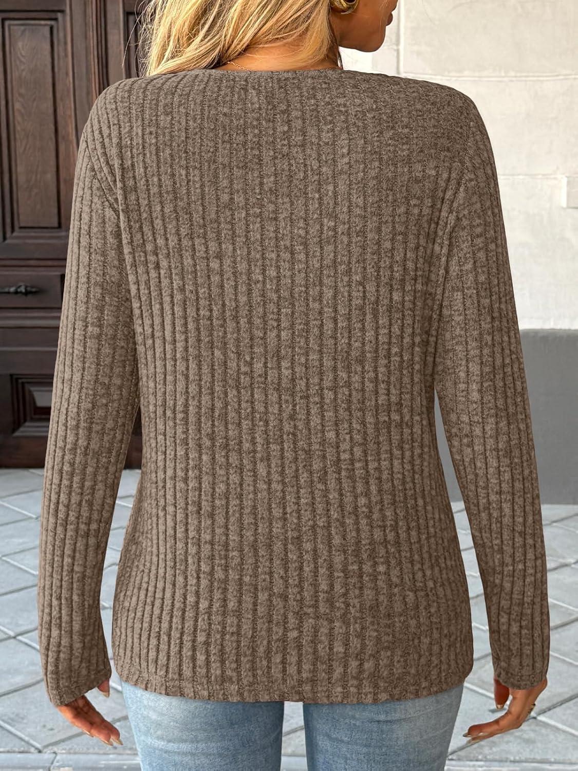 AUTOMET Womens Long Sleeve Shirt Fall Fashion 2025 V Neck Sweater Tunic Tops Dressy Casual Work Blouse Trendy Winter Clothing(Khaki)