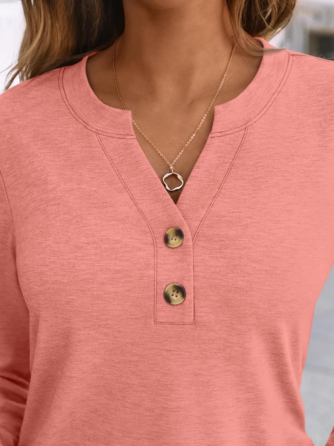 AUTOMET Women’s Long Sleeve Shirts 2025 Fall Fashion Dressy Casual Tops Trendy Henley Blouses Cute Work Outfits Clothes(Coral)