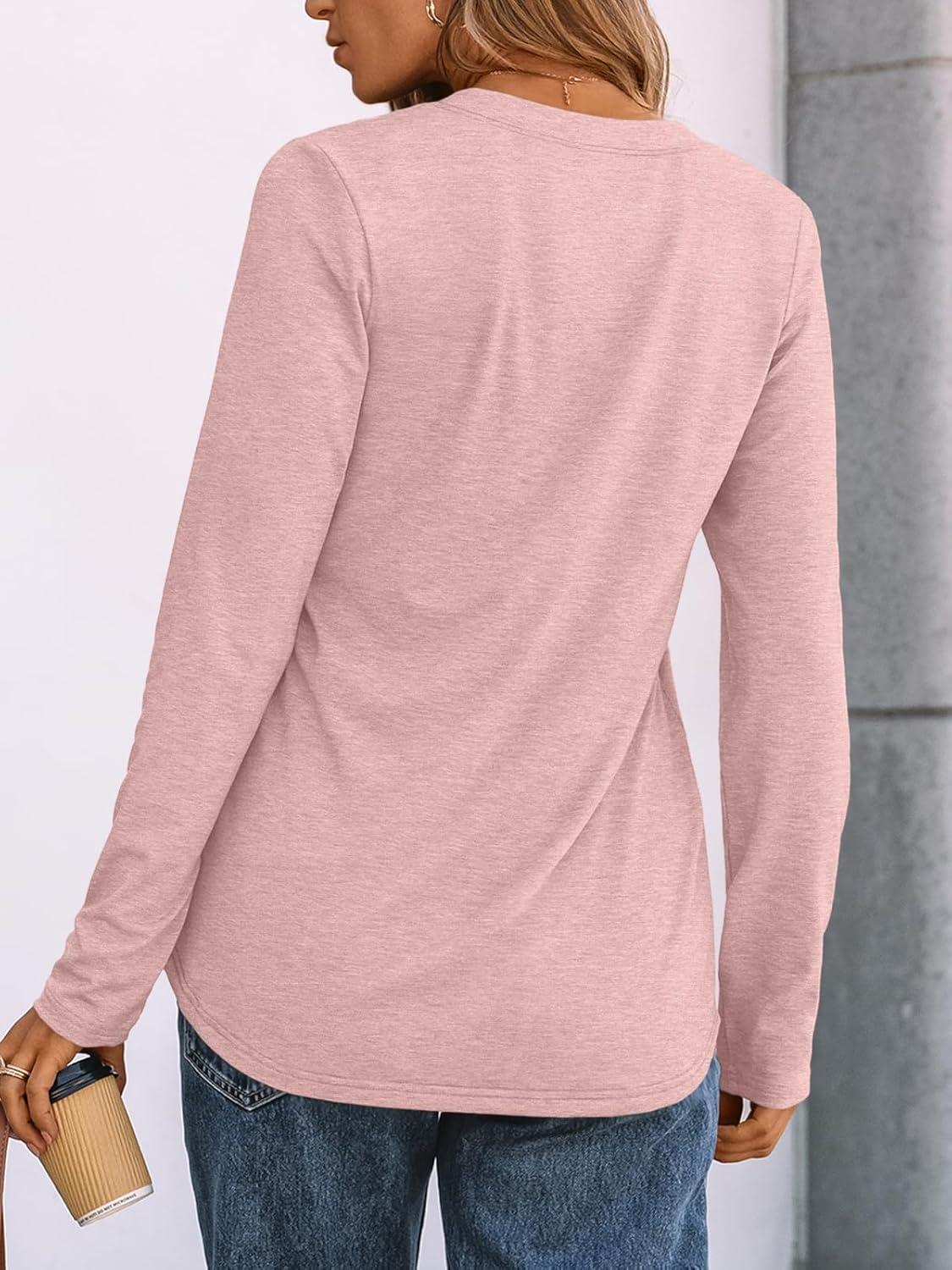 AUTOMET Women’s Long Sleeve Shirts 2025 Fall Fashion Dressy Casual Tops Trendy Henley Blouses Cute Work Outfits Clothes(Pink)