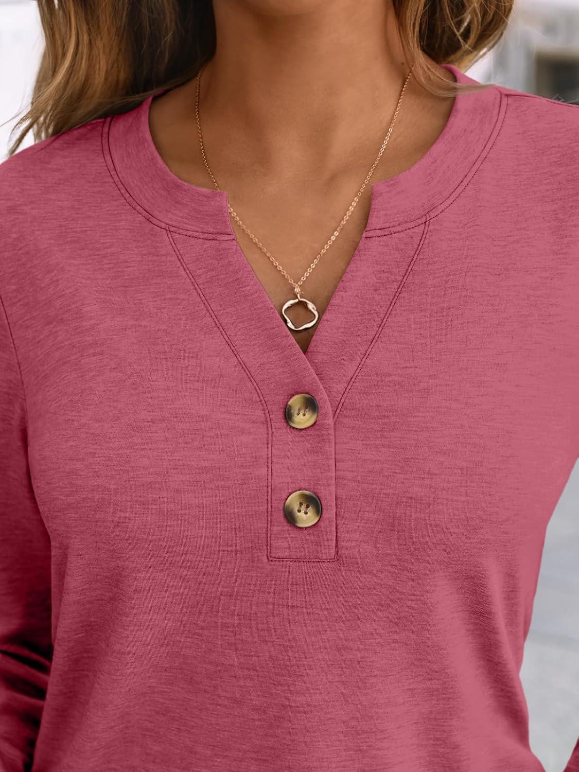 AUTOMET Women’s Long Sleeve Shirts 2025 Fall Fashion Dressy Casual Tops Trendy Henley Blouses Cute Work Outfits Clothes(Rose)