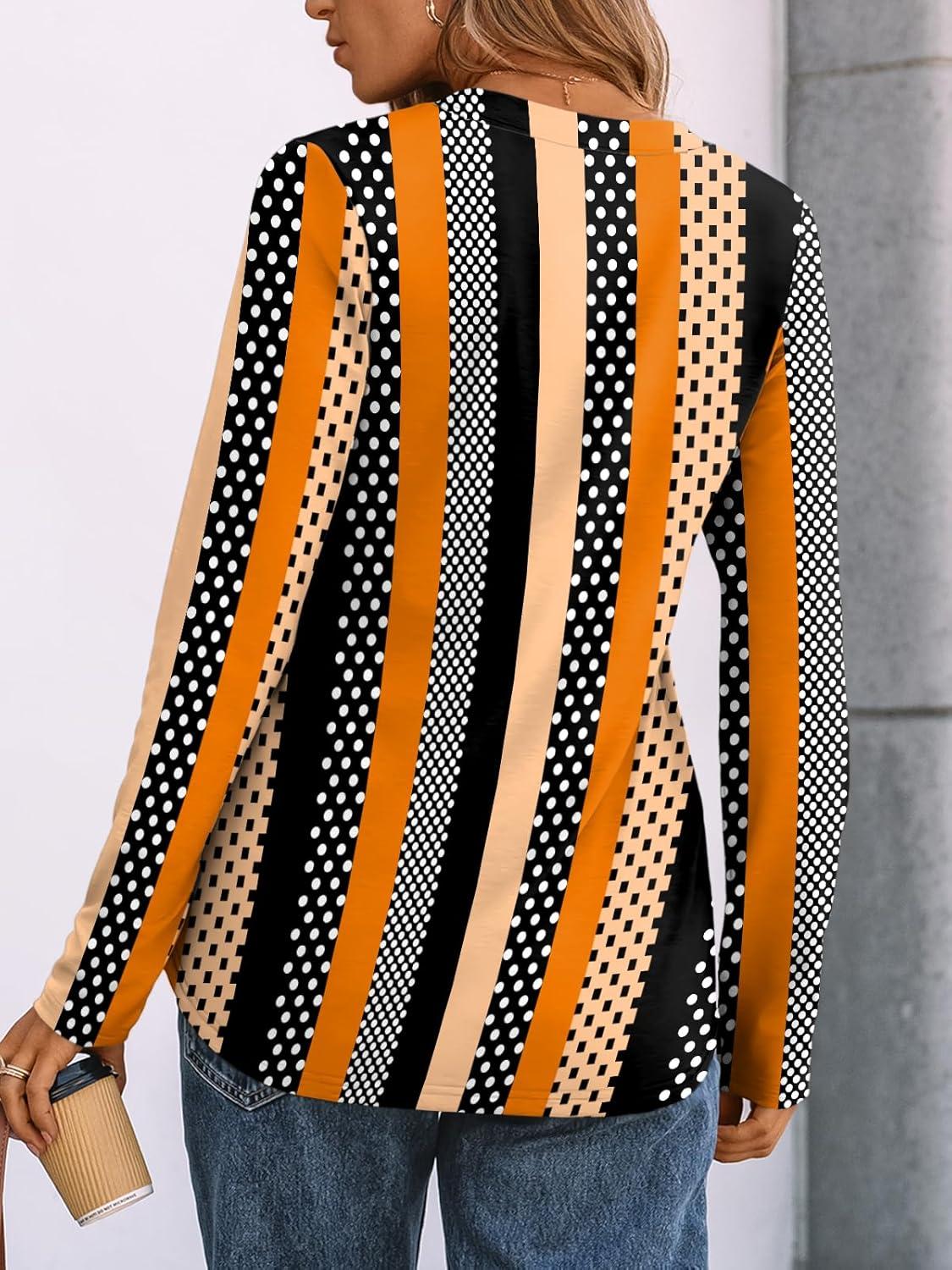 AUTOMET Women’s Long Sleeve Shirts 2025 Fall Fashion Dressy Casual Tops Trendy Henley Blouses Cute Work Outfits Clothes(Striped Dots)