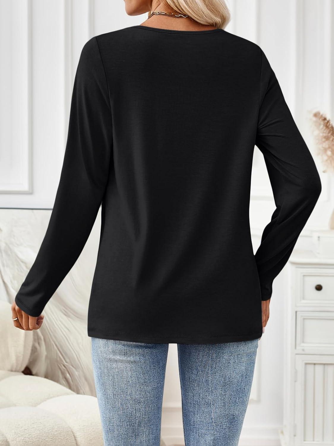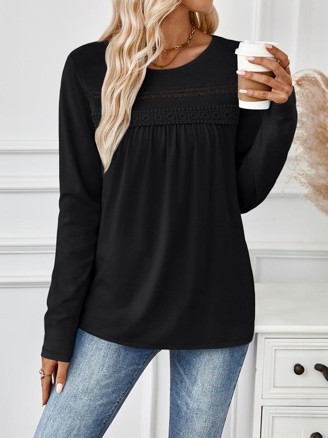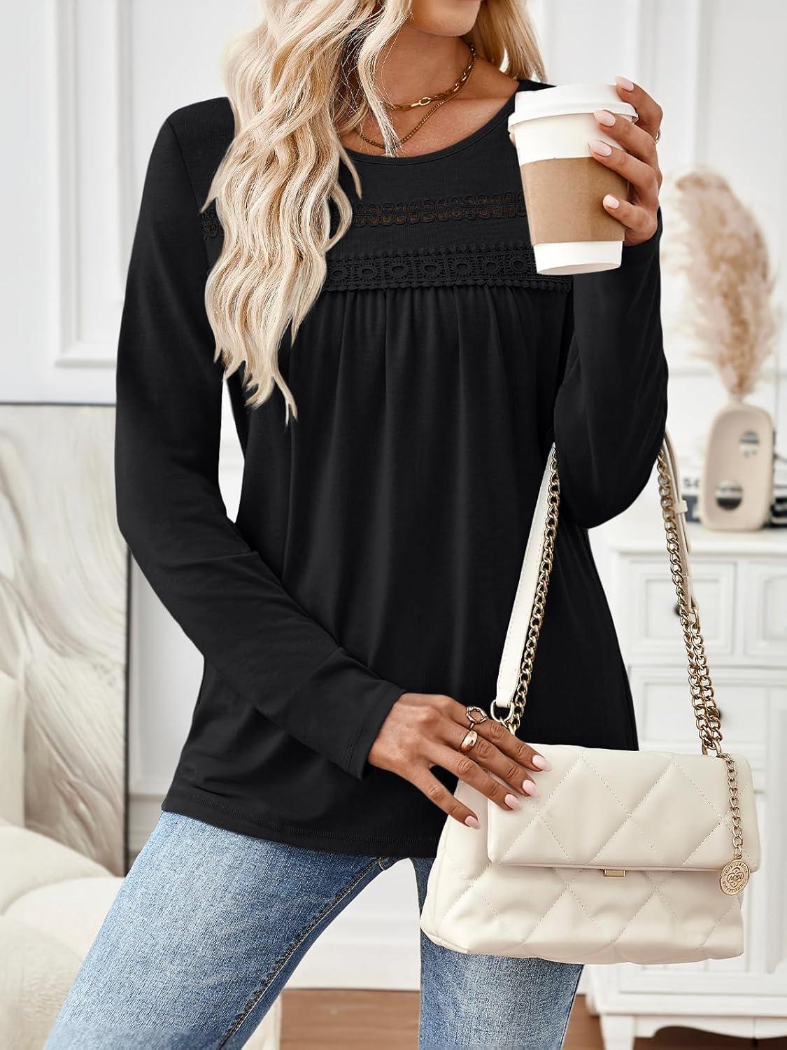 AUTOMET Womens Long Sleeve Shirts Business Casual Blouses Dressy Fall Babydoll Tops(Black)