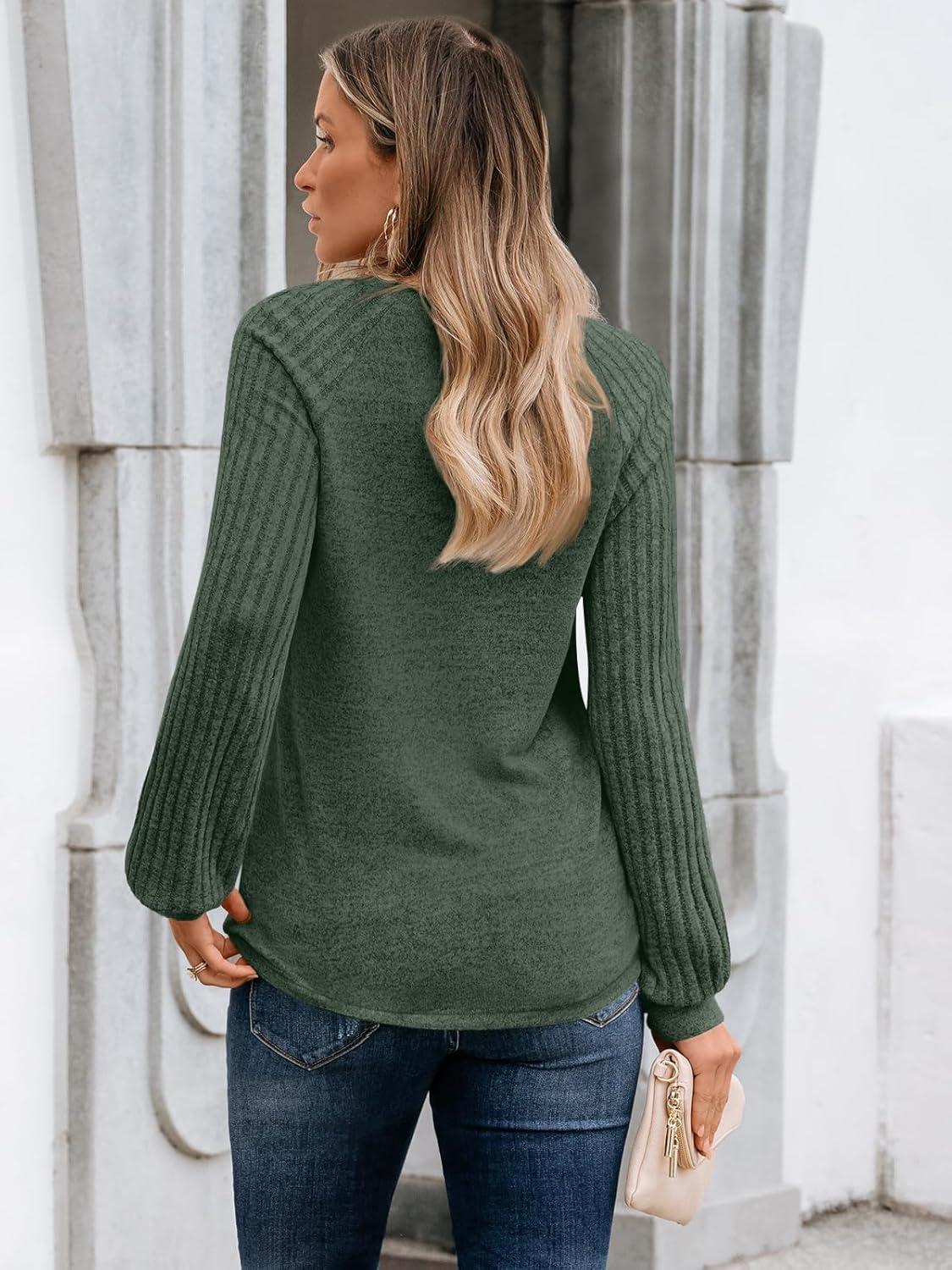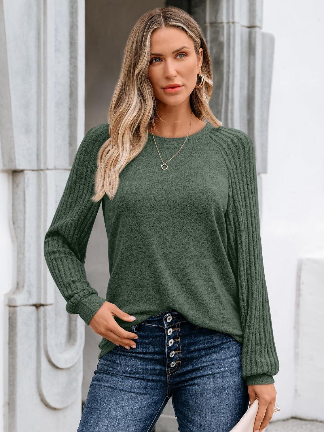 AUTOMET Womens Long Sleeve Shirts Casual Basic Fall Tops Cozy Lightweight Pullover Sweaters Outfits 2025 Winter Clothing(Green)