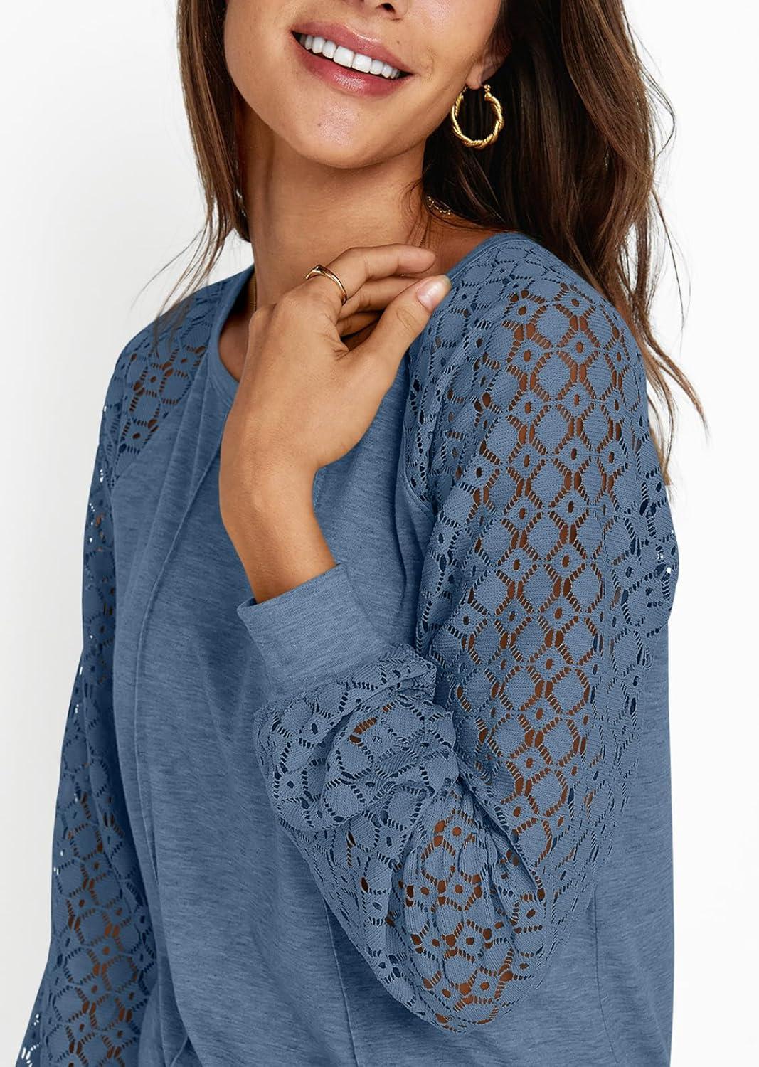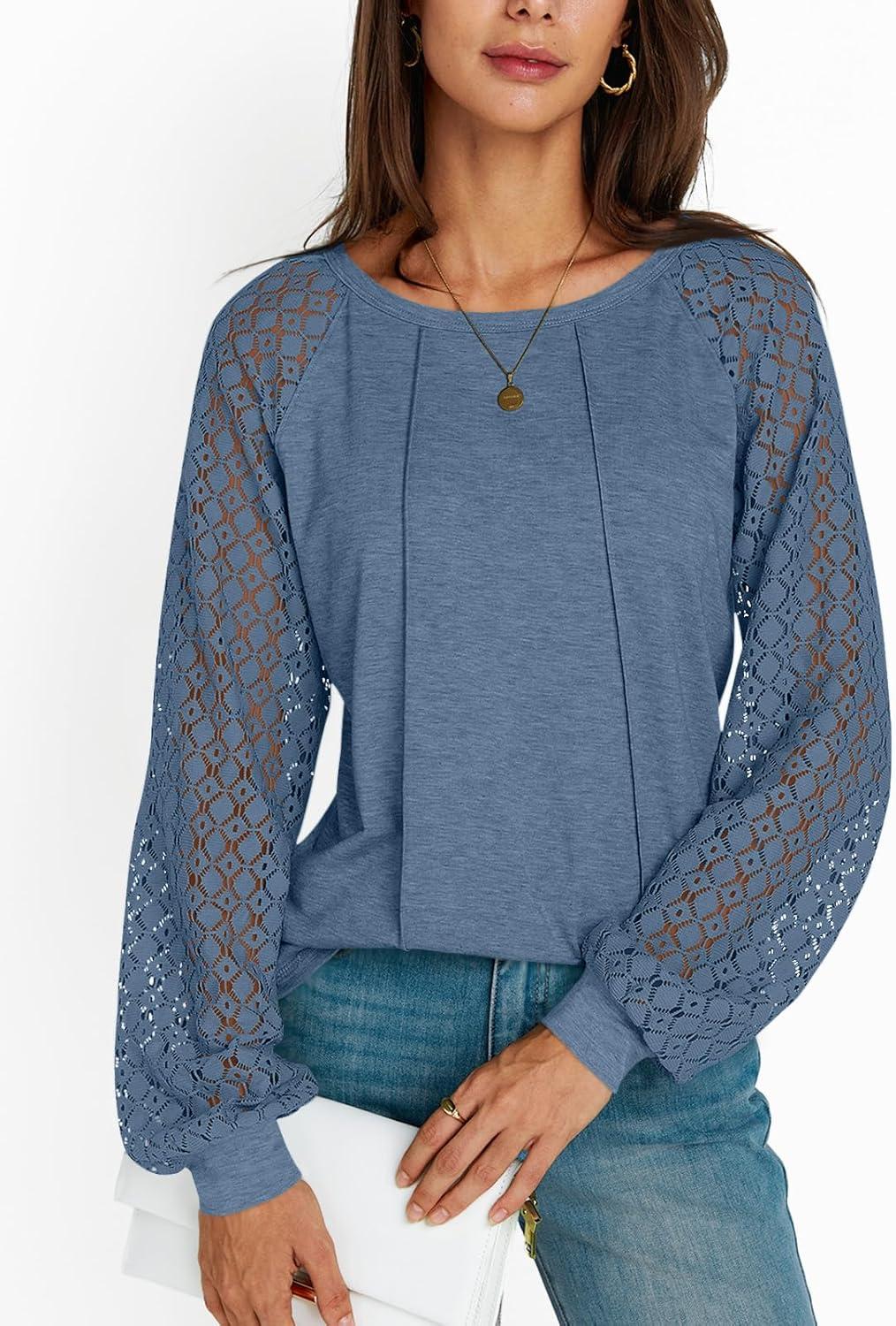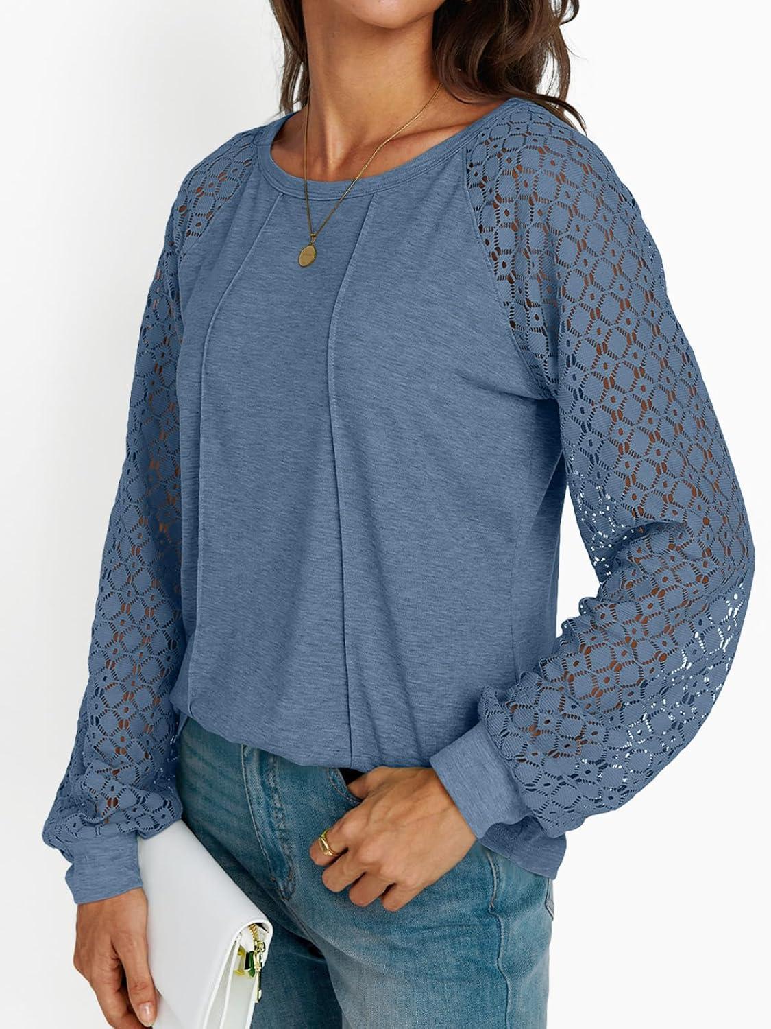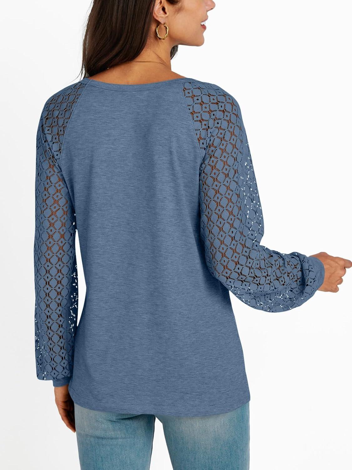 AUTOMET Womens Long Sleeve Shirts Casual Tops Dressy Outfits Fall Fashion Blouses Lace Clothes Y2k(Greyblue)