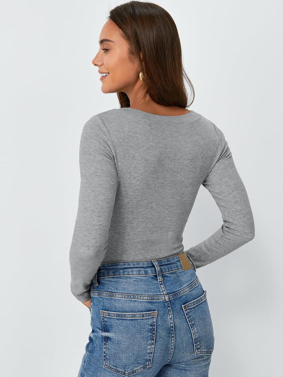 AUTOMET Womens Long Sleeve Shirts Fall Outfits Fashion Tops V Neck Ribbed Basic Casual Clothes Winter Underscrub(Grey)