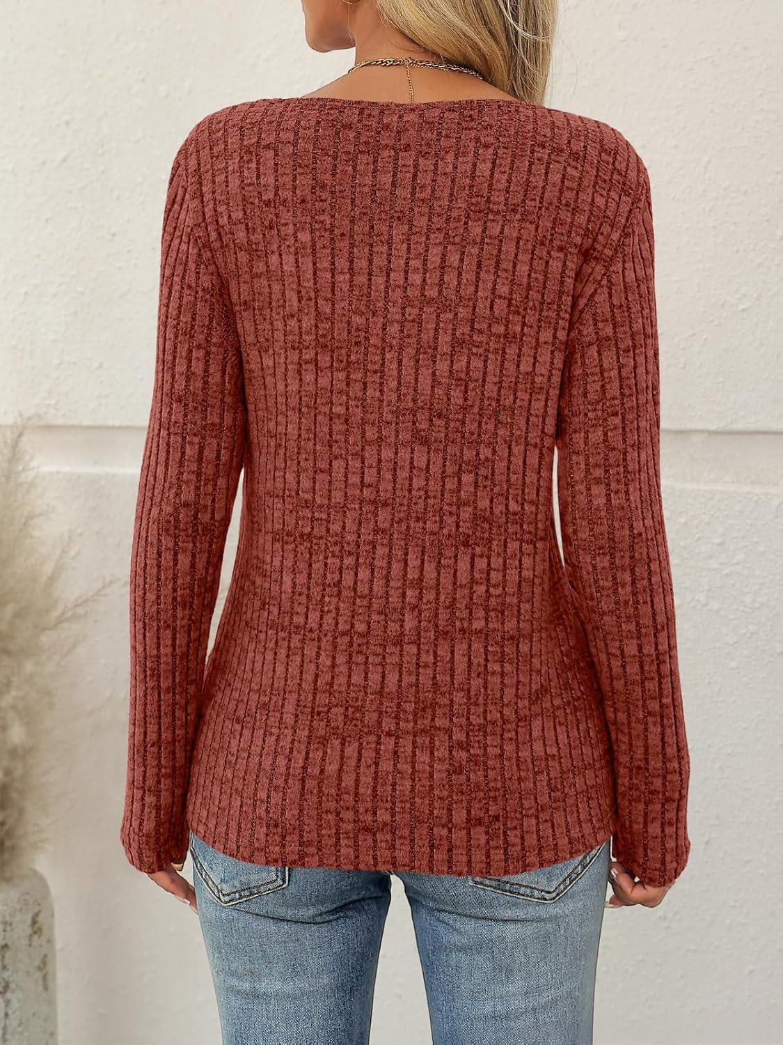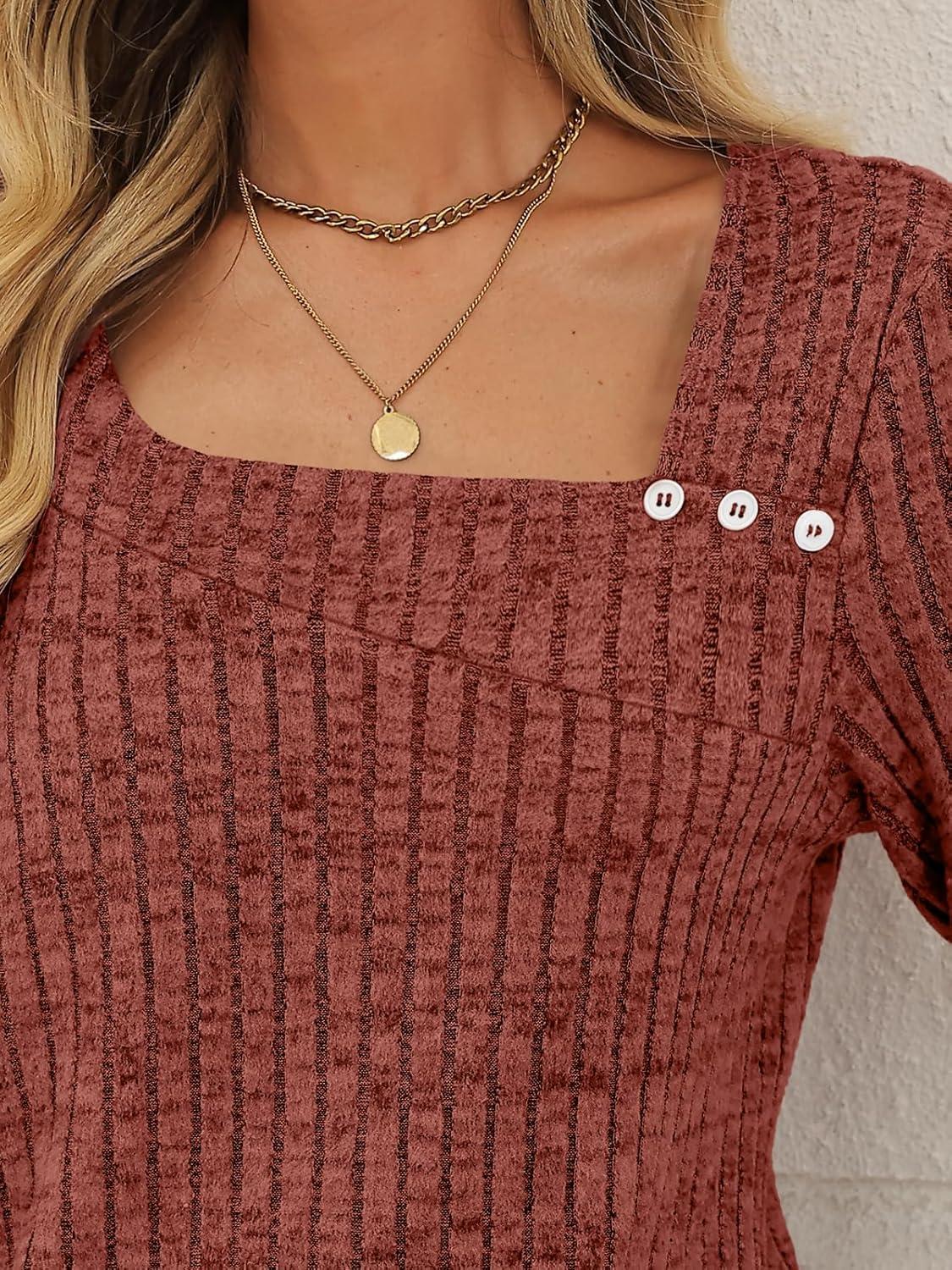 AUTOMET Womens Long Sleeve Shirts Fall Tops Fashion Outfits 2025 Asymmetric Square Neck Sweaters Dressy Casual Tunic Clothes(Caramel)