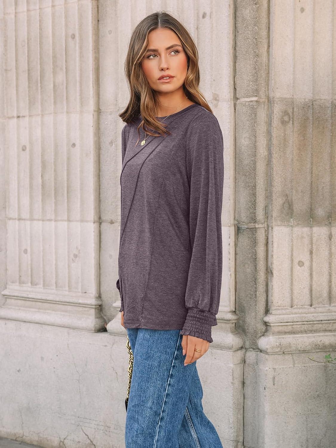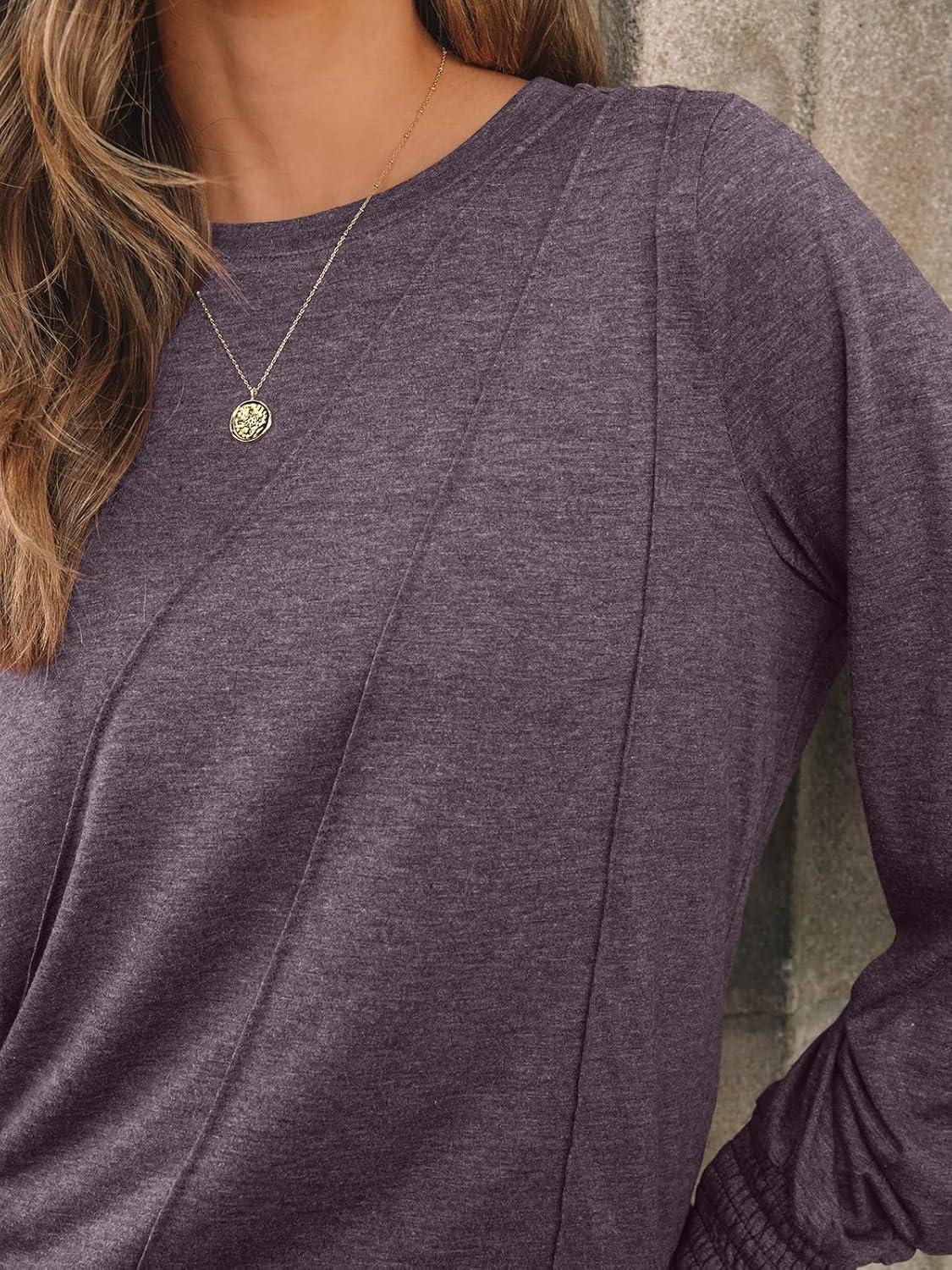 imageAUTOMET Womens Long Sleeve Tops Pleated Crew Neck Business Casual Blouses Fashion Clothes 2025 Trendy OutfitsRose Taupe