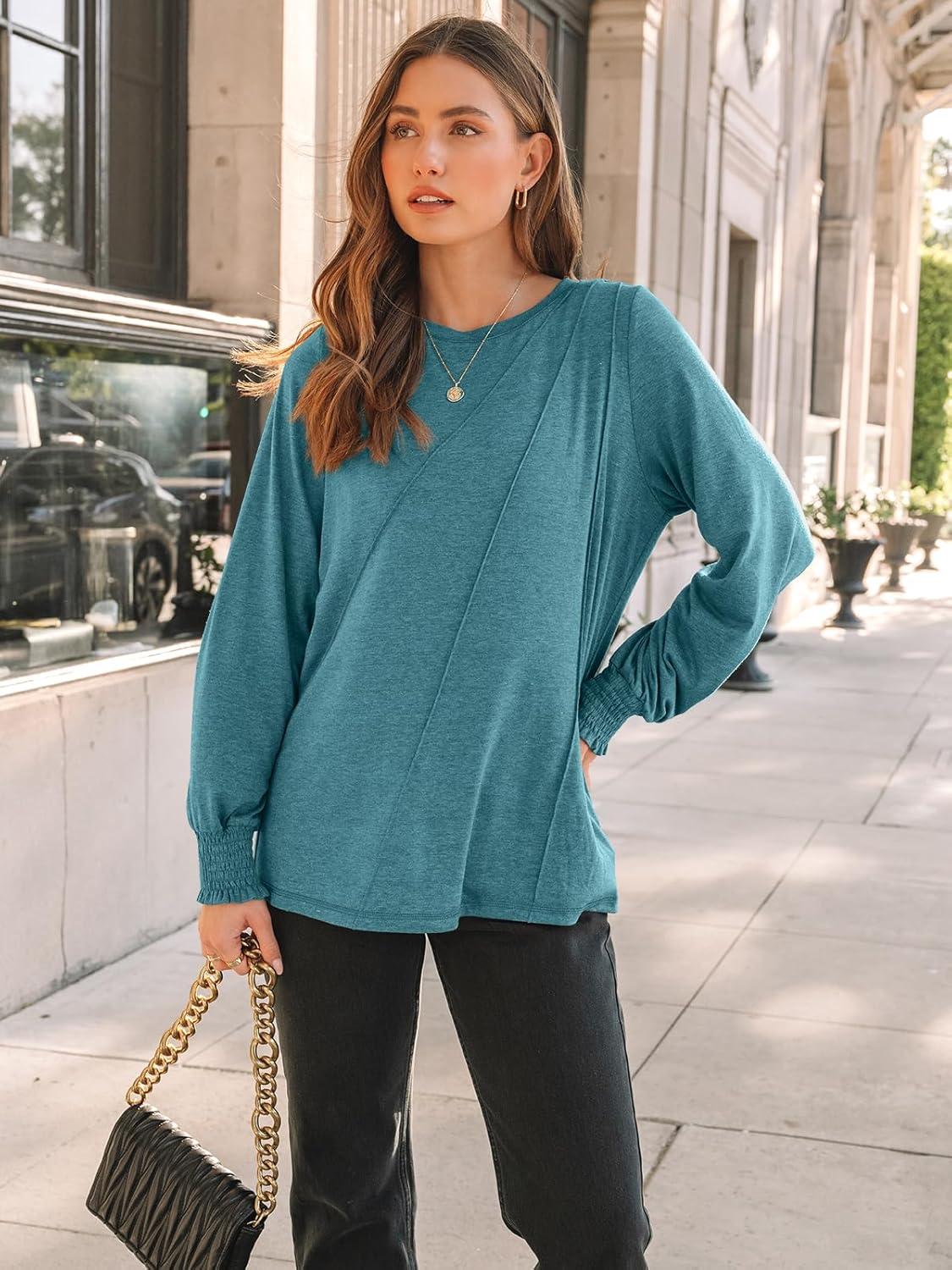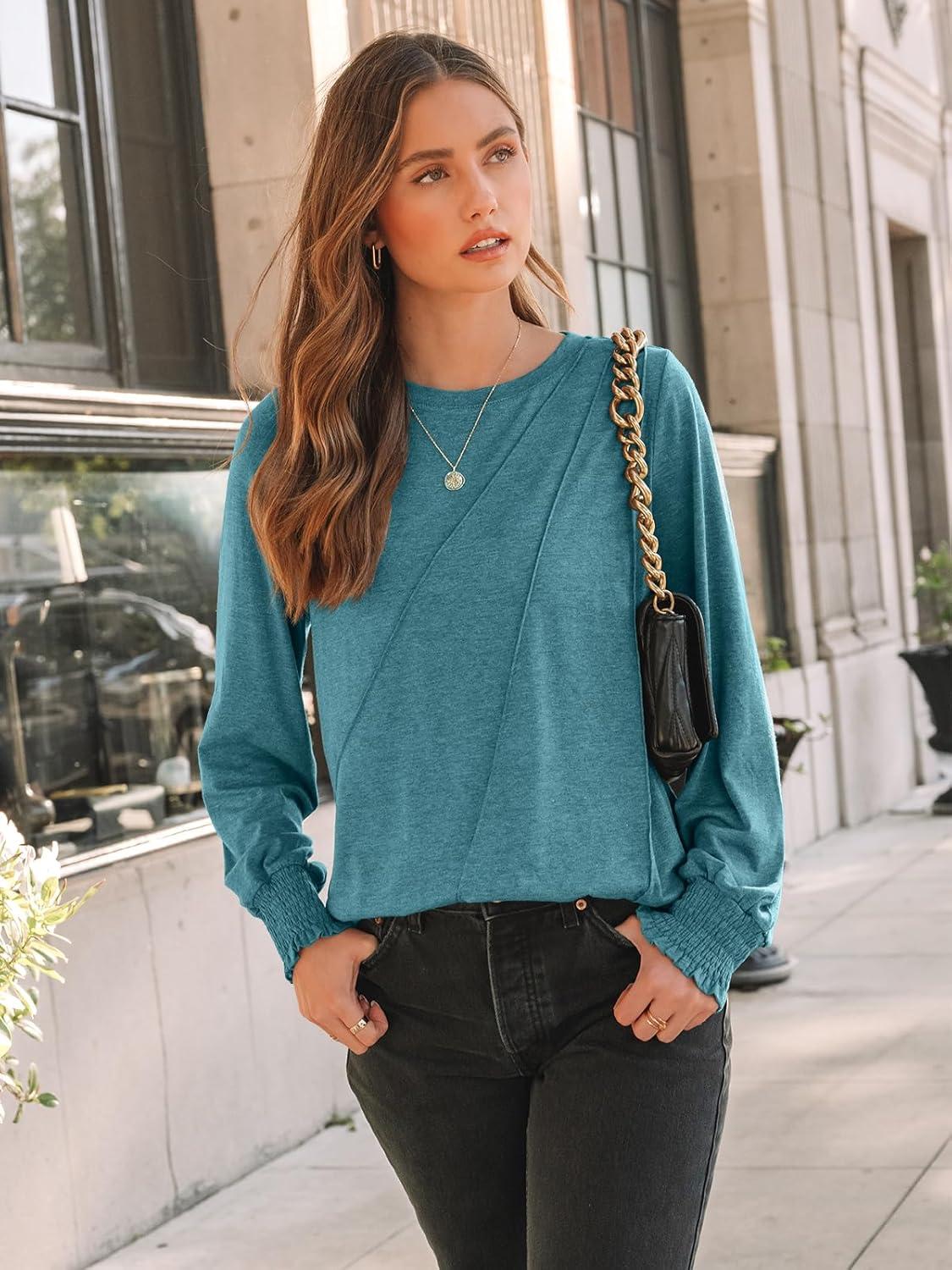 Don’t wait, get up to 50% off on AUTOMET Womens Long Sleeve Tops Pleated Crew Neck Business Casual Blouses Fashion Clothes 2025 Trendy Outfits(Turquoise) during our end-of-season sale event.
