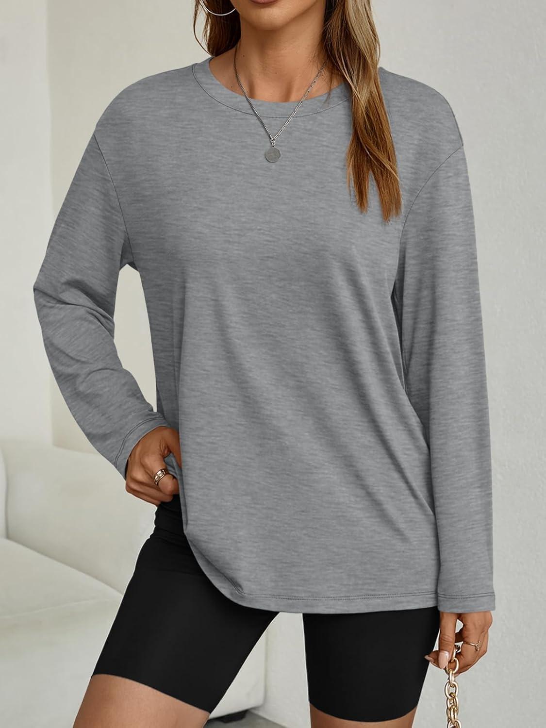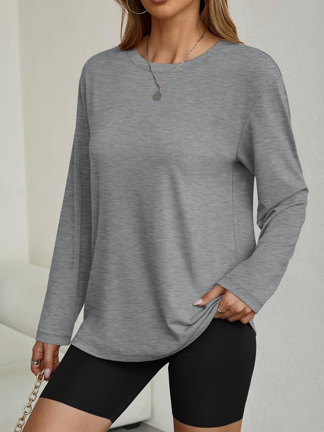 AUTOMET Women's Oversized Long Sleeve Shirts Fall Trendy Tops Fashion Gym Baggy Basic Casual Loose Fit Workout Y2k Clothes(Grey)