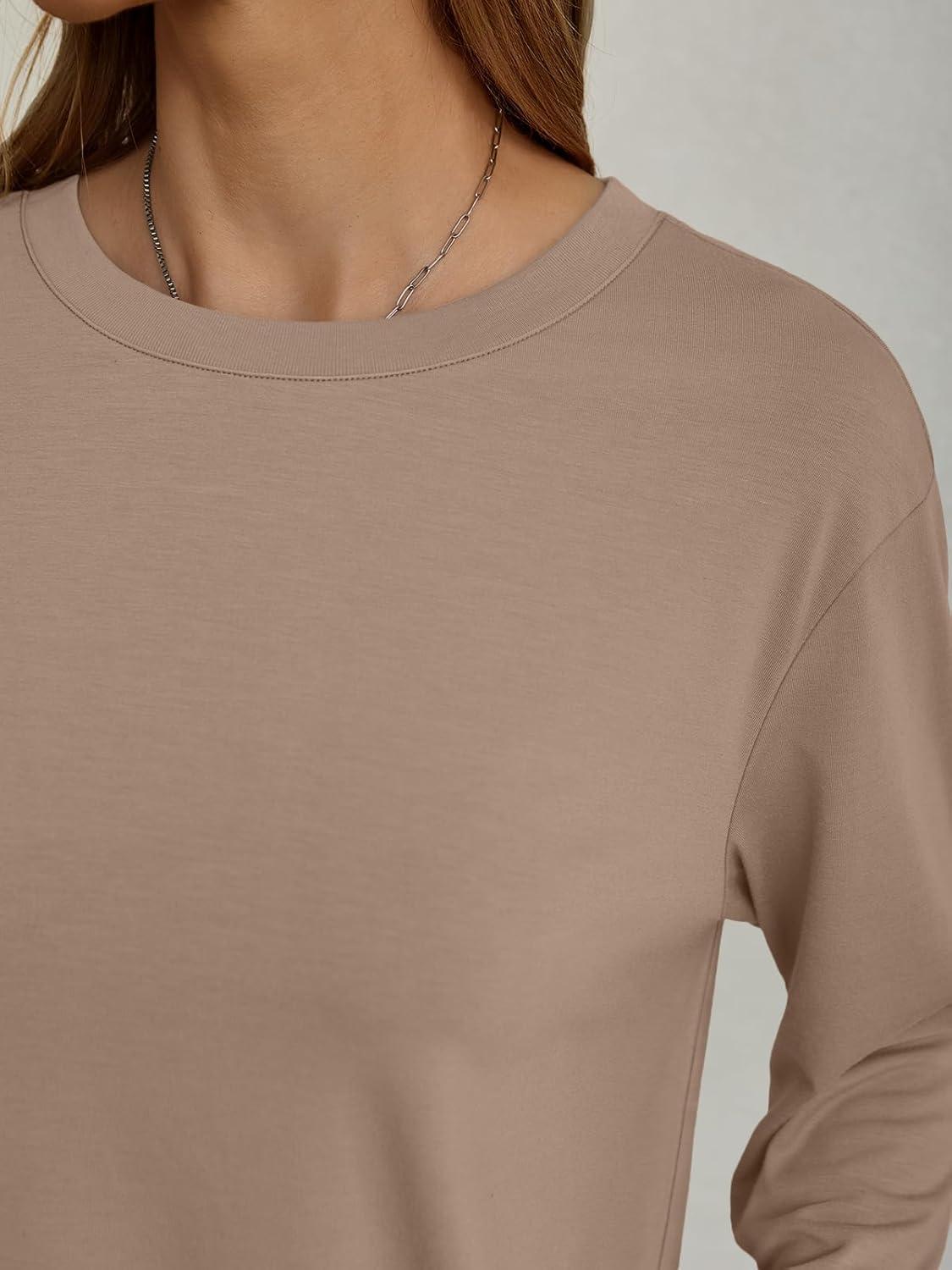 imageAUTOMET Womens Oversized Long Sleeve Shirts Fall Trendy Tops Fashion Gym Baggy Basic Casual Loose Fit Workout Y2k ClothesMaple