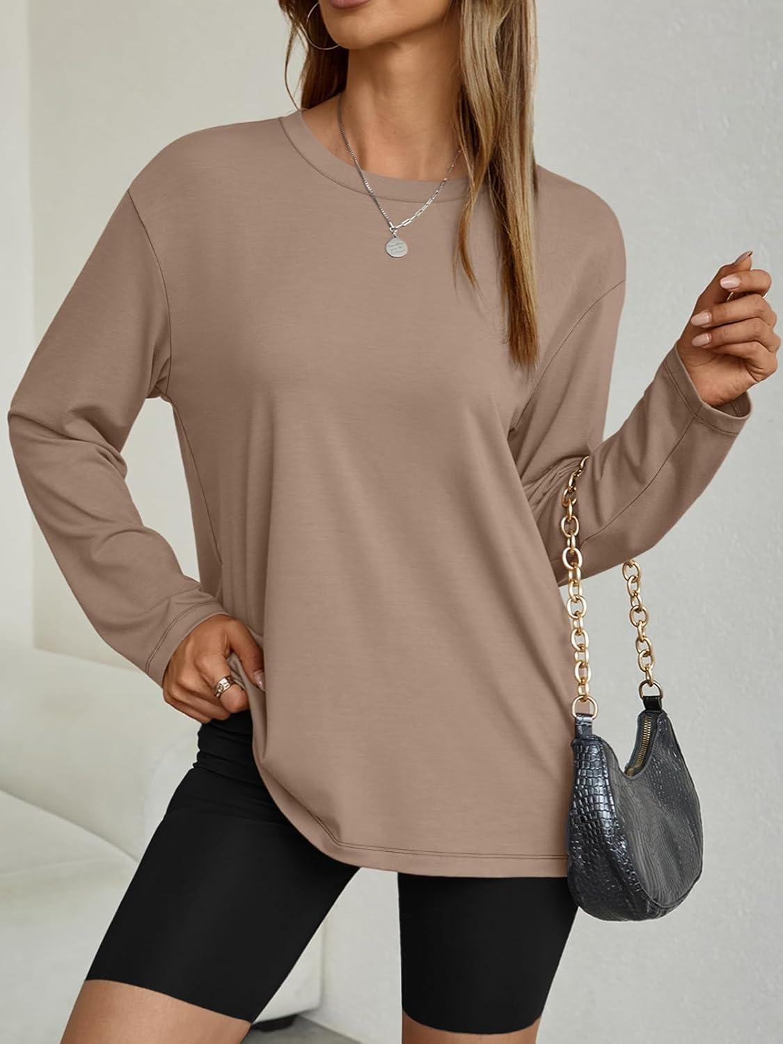 AUTOMET Women’s Oversized Long Sleeve Shirts Fall Trendy Tops Fashion Gym Baggy Basic Casual Loose Fit Workout Y2k Clothes(Maple)