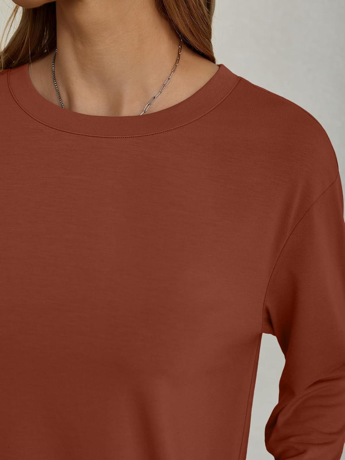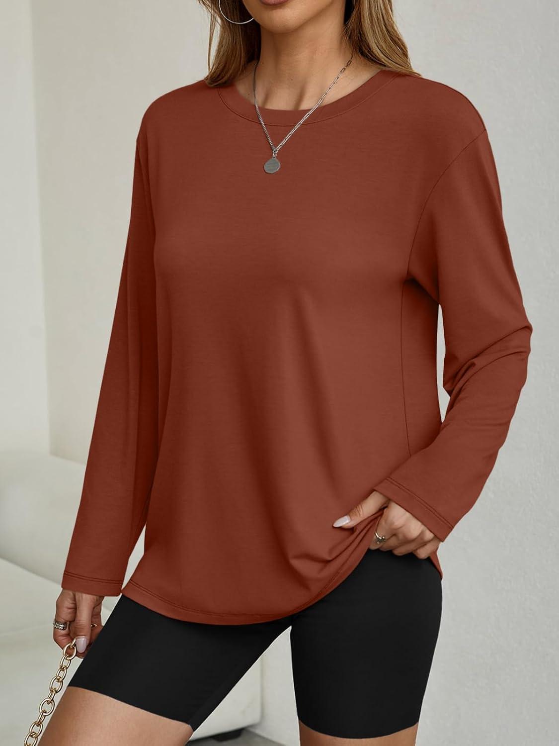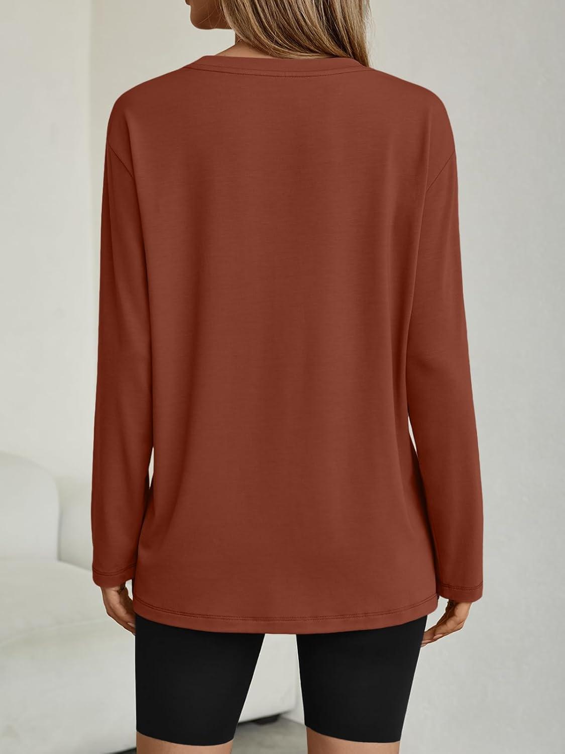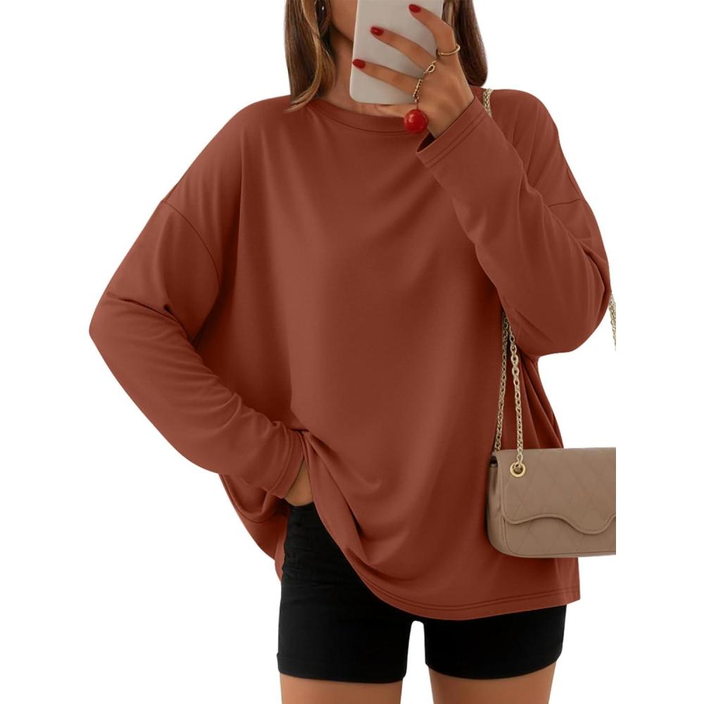 AUTOMET Women’s Oversized Long Sleeve Shirts Fall Trendy Tops Fashion Gym Baggy Basic Casual Loose Fit Workout Y2k Clothes(Maple)