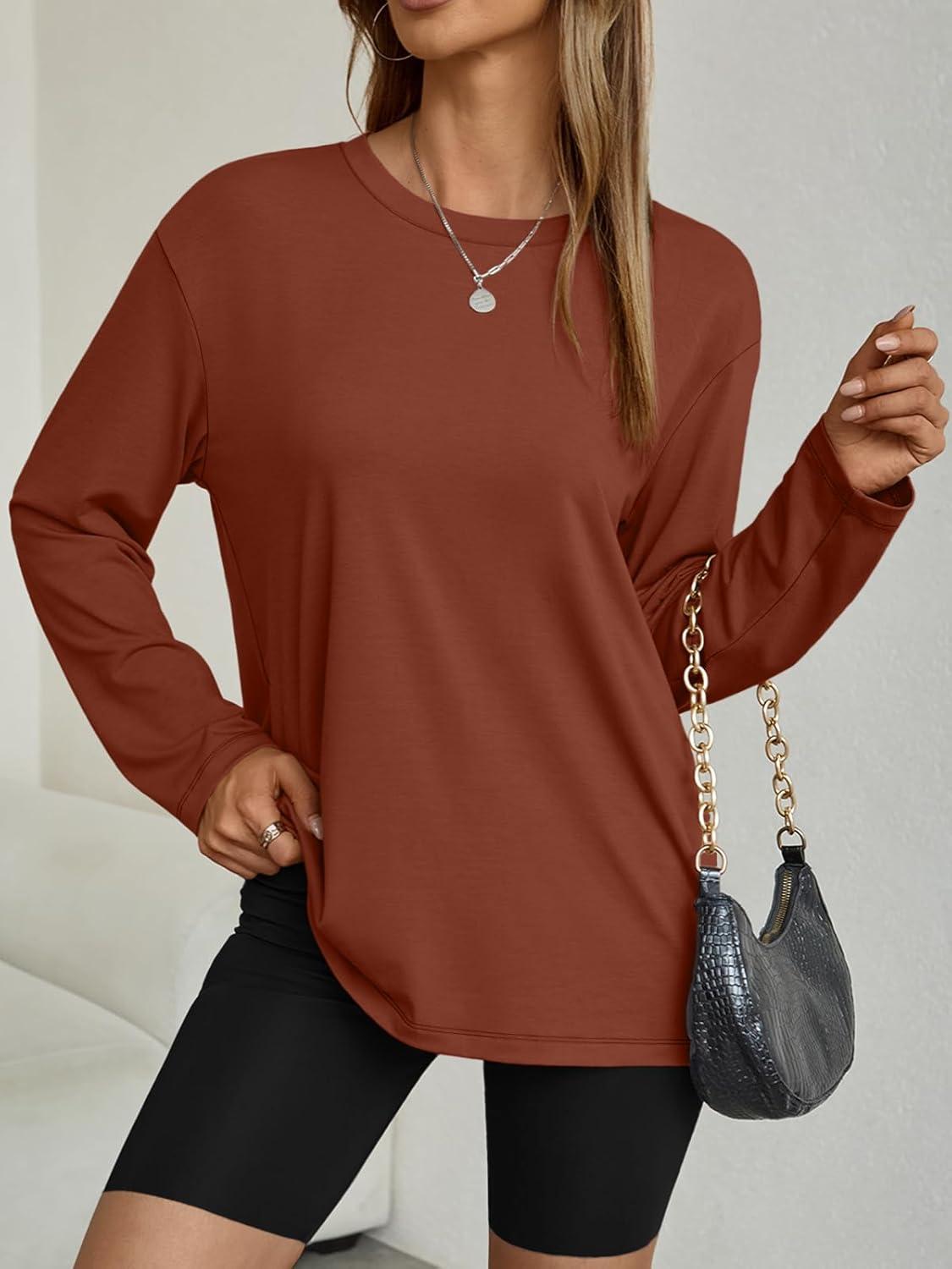 AUTOMET Women's Oversized Long Sleeve Shirts Fall Trendy Tops Fashion Gym Baggy Basic Casual Loose Fit Workout Y2k Clothes(Maple)