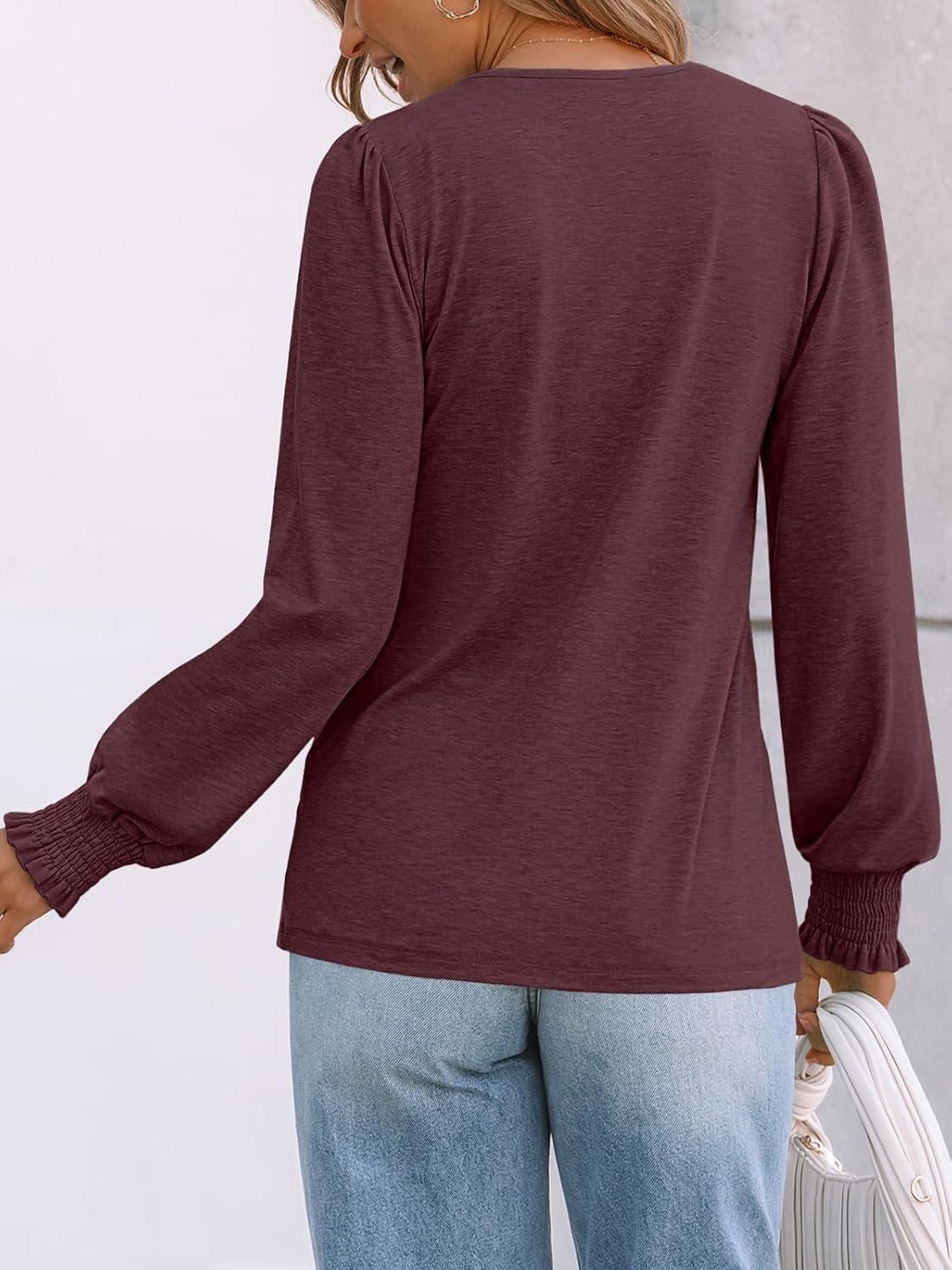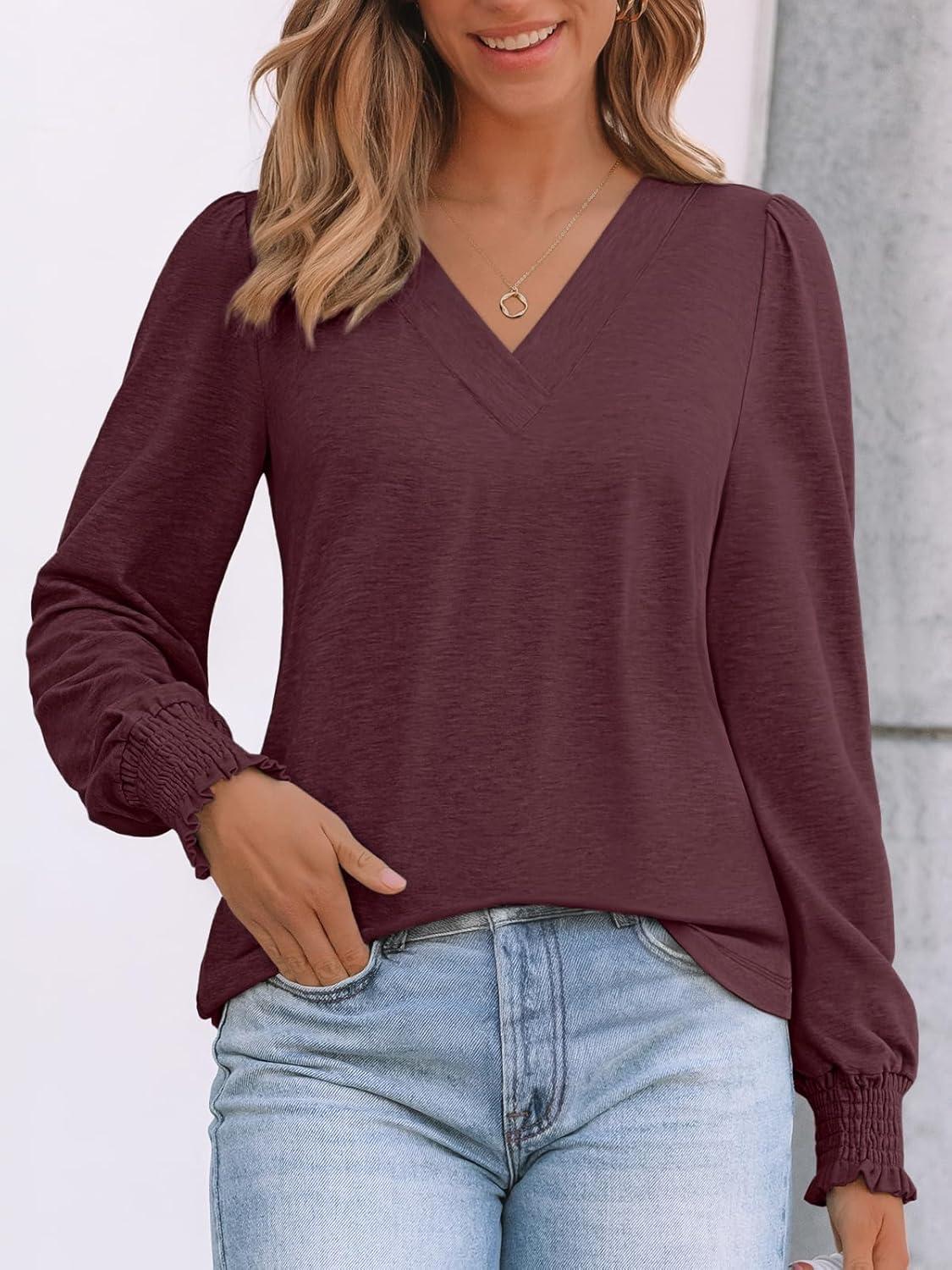 AUTOMET Womens T-Shirts Long Sleeve Tops V Neck Blouses Dressy Business Casual Fall Fashion 2025 Trendy Outfit Winter Clothes(Winered)