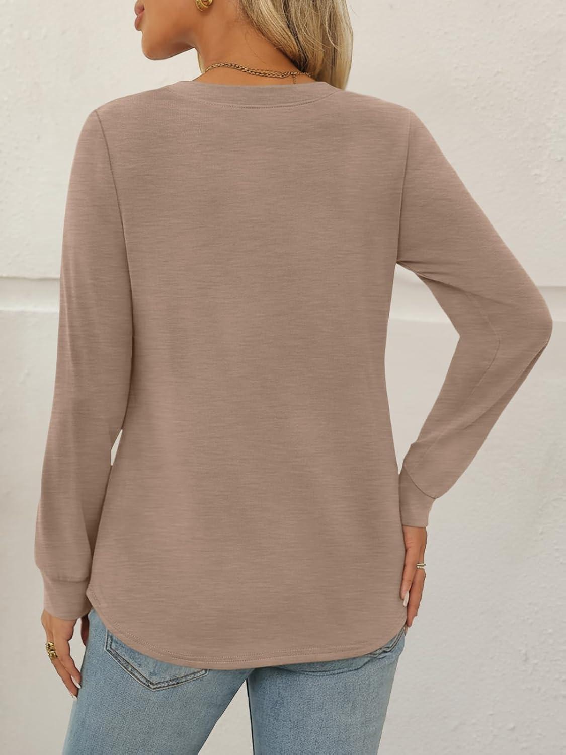 AUTOMET Womens Tops Long Sleeve Shirts Fall Fashion Clothes Henley Dressy Casual Blouses Trendy 2025(Khaki)
