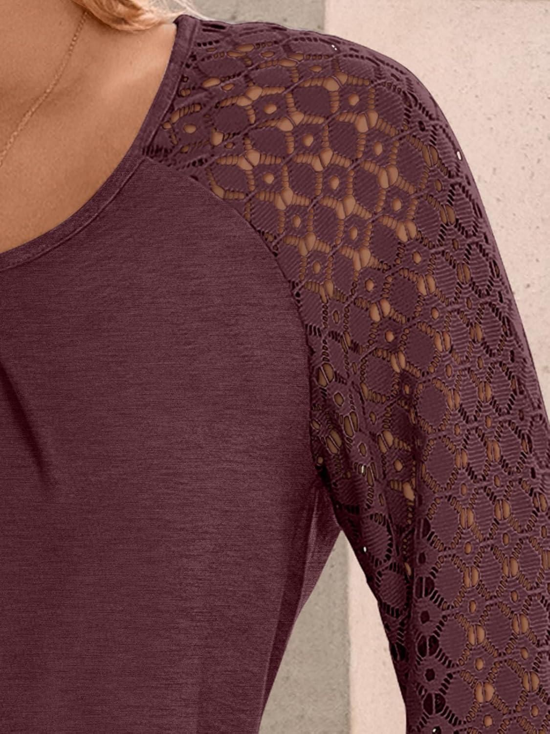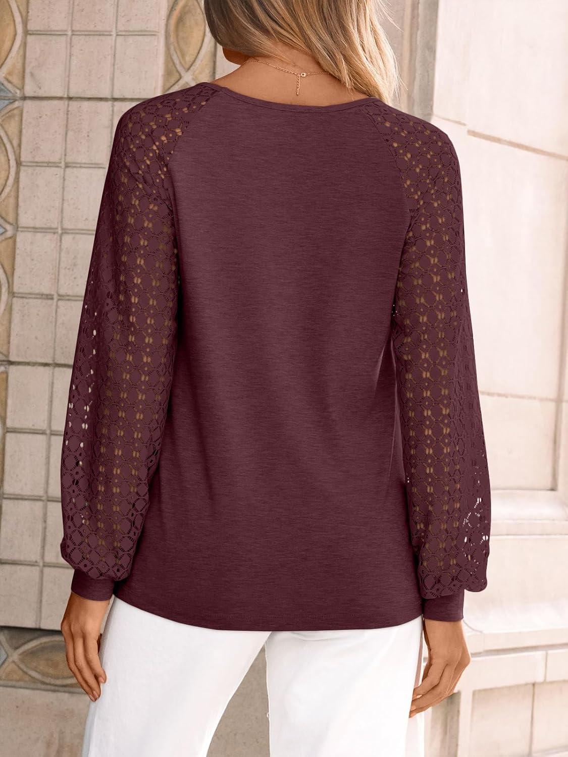 AUTOMET Womens Tops Long Sleeve T-Shirts Lace Business Dressy Casual Blouses Fall Fashion 2025 Trendy Outfits Winter Clothes(Winered)
